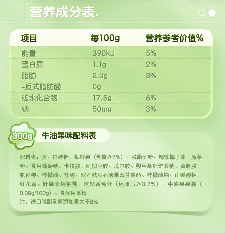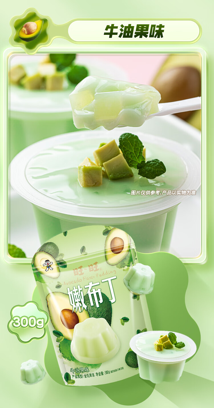 旺旺 嫩布丁牛油果味 休闲零食 果冻布丁餐后甜点 300 克