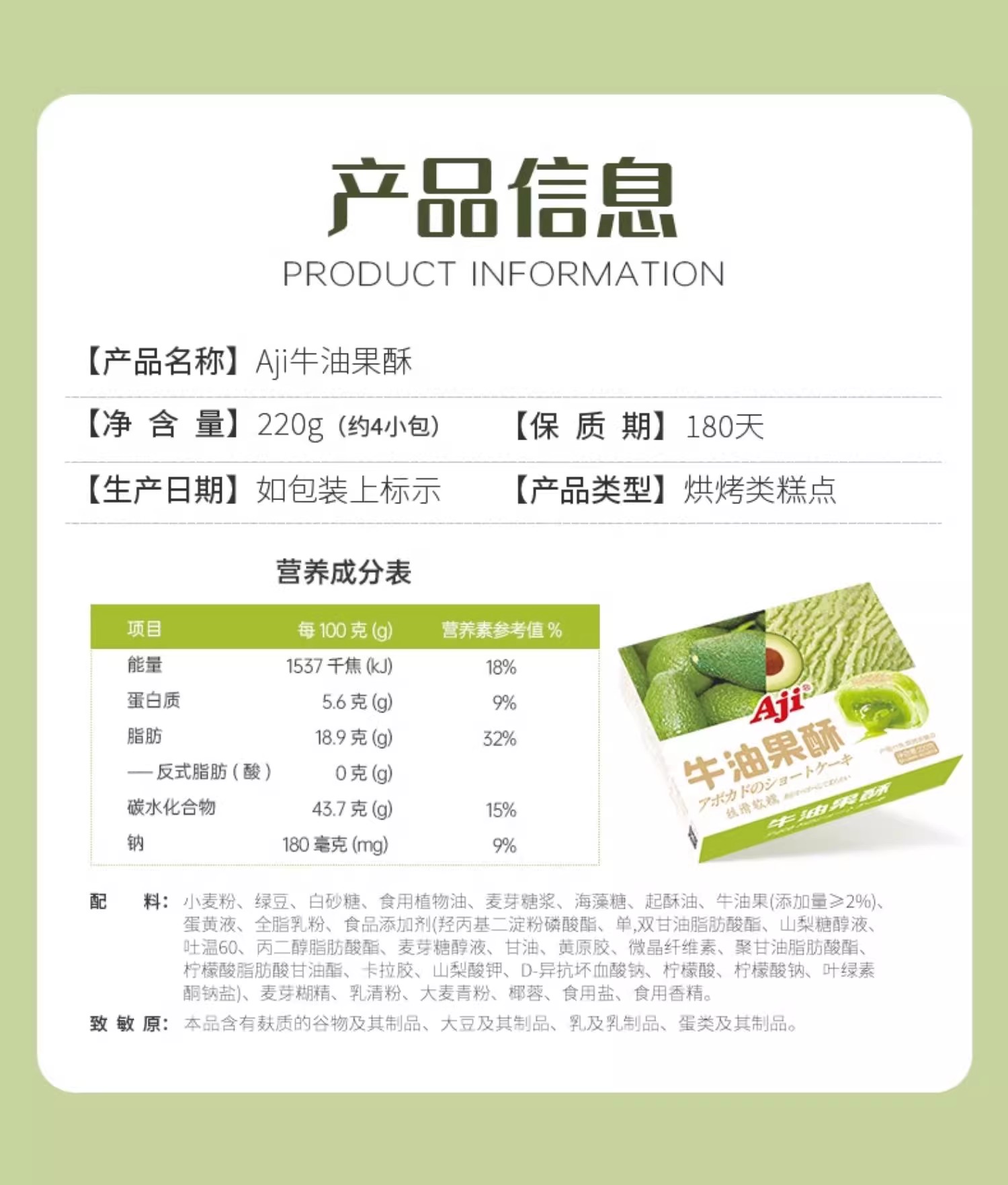 Avocado pastry 220 그램