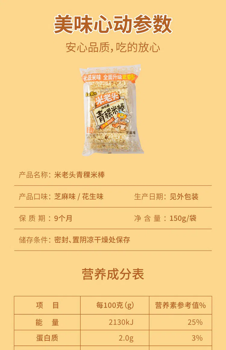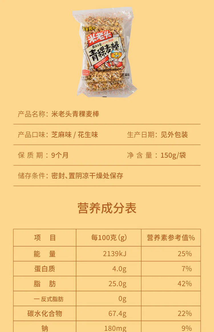 米老头青稞米棒花生味 150 克