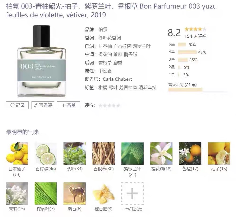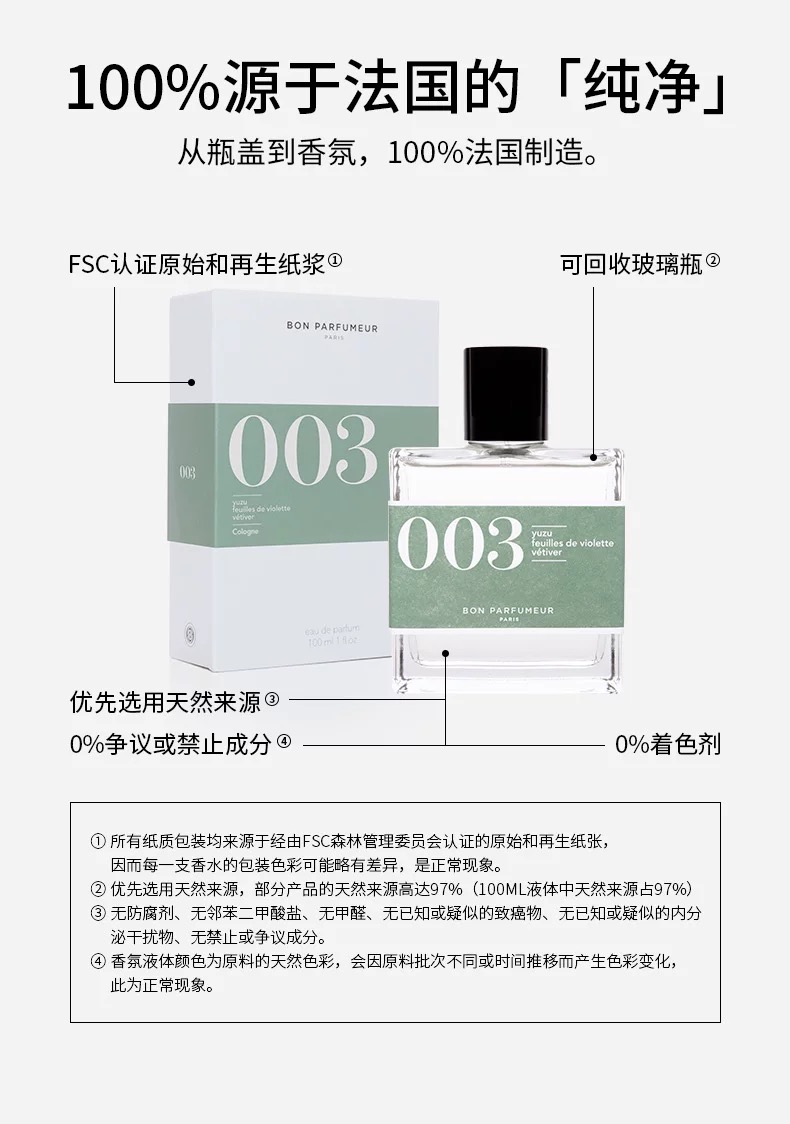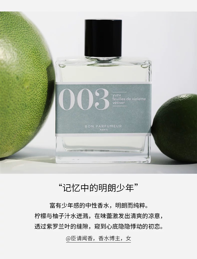 柏氛003EDP 清新绿意柚子古龙香30ml 30 毫升