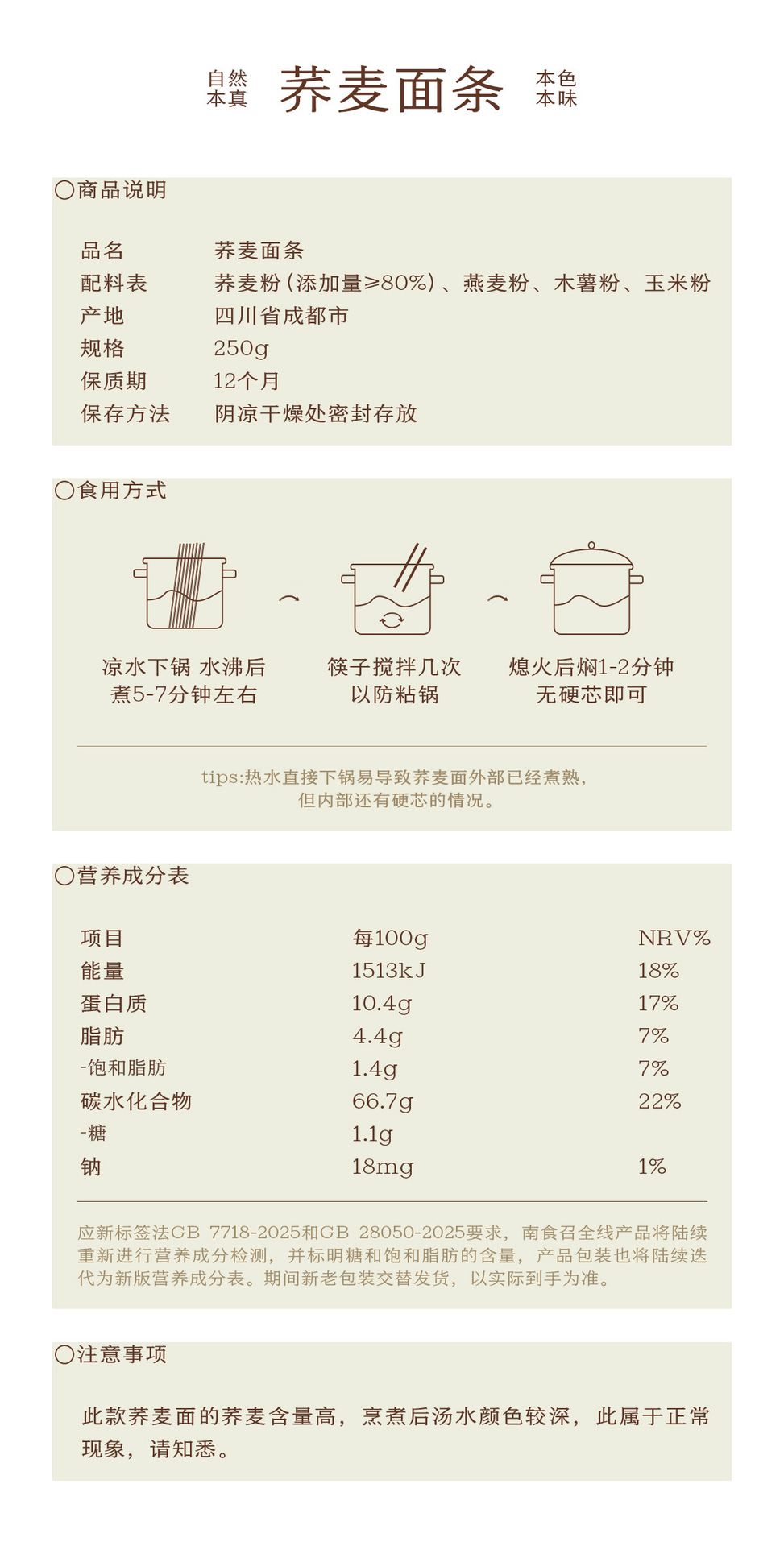 【南食召】荞麦面条 爽滑不粗糙粗粮主食早餐面2袋* 250 克