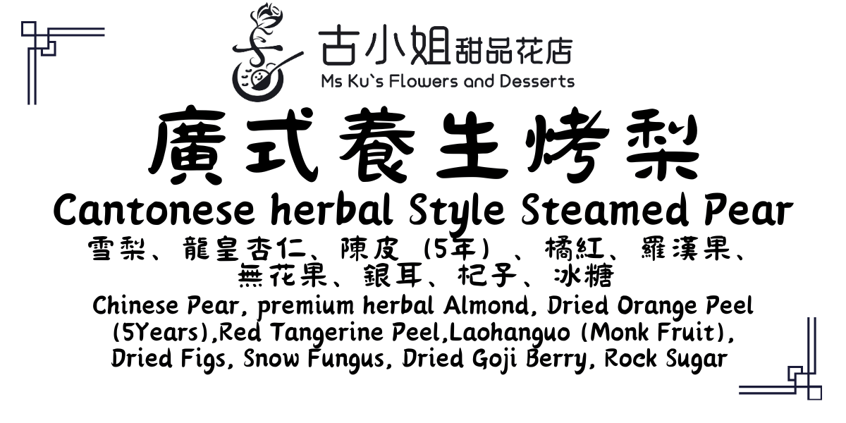 【成分】原隻鴨梨,龍皇大杏仁,五年新會陳皮,羅漢果、銀茸、冰糖