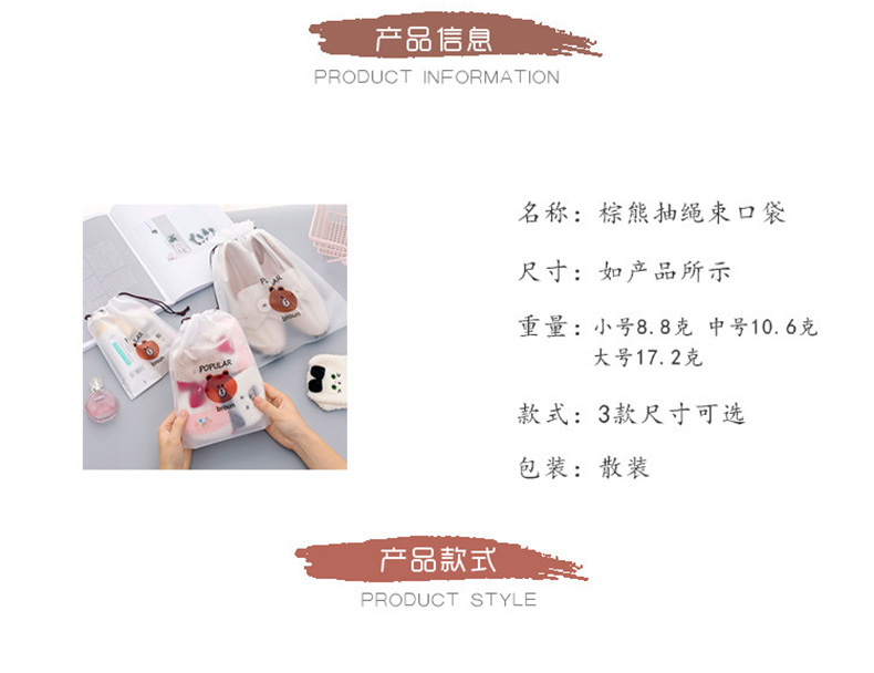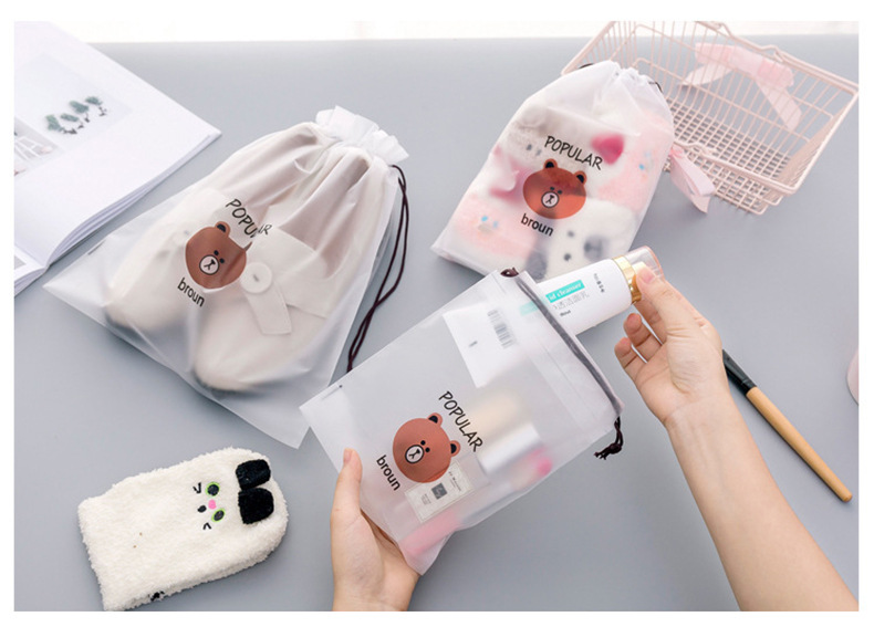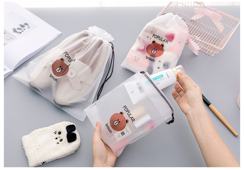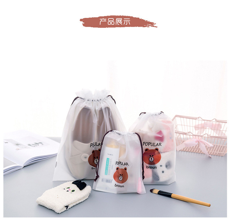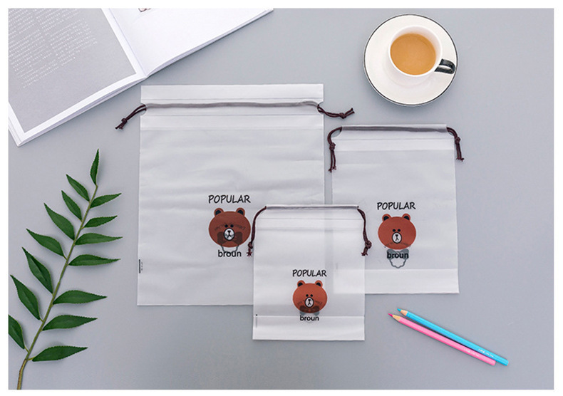 卡通PE透明防水抽繩束口收納袋 旅行便攜式包裝 衣服整理袋 1 个