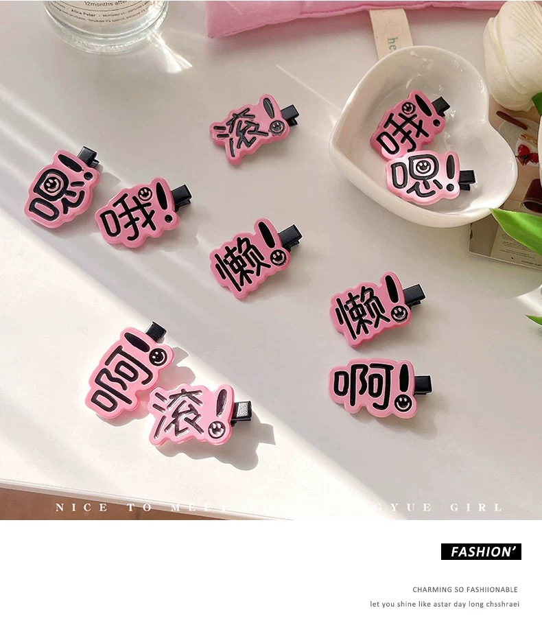 可爱搞怪创意文字发夹*1 图案随机 可备注 1 份
