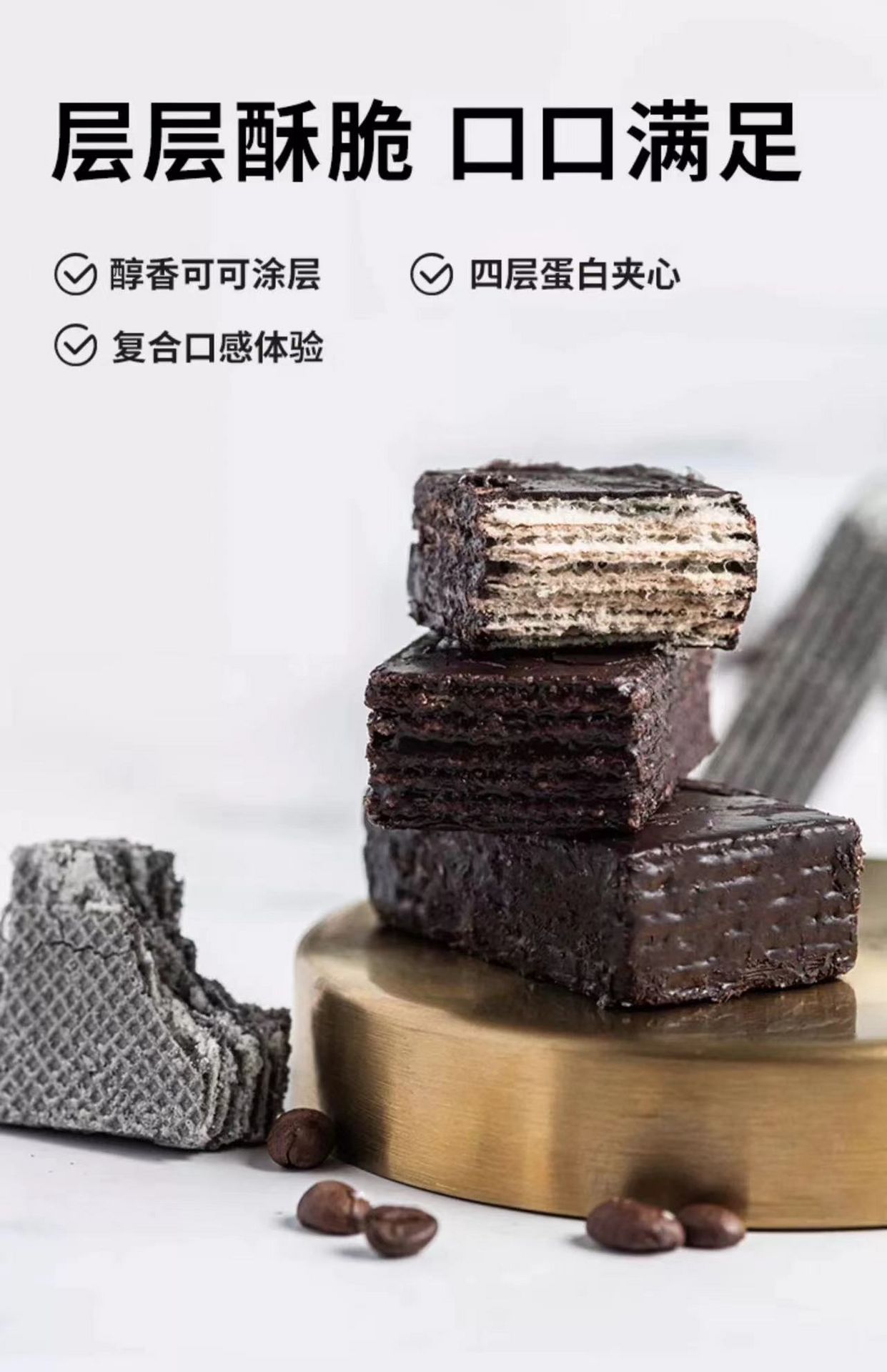仅90大卡【威化棒】黑巧克力味 高膳食纤维高蛋白棒8根 160 克