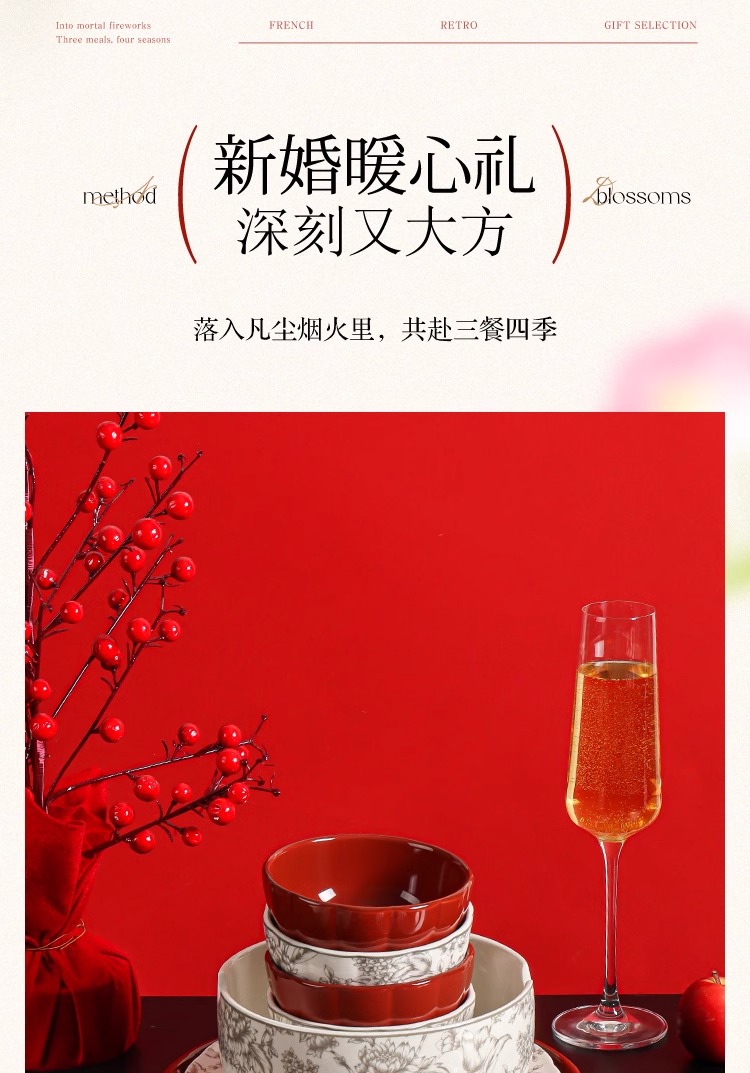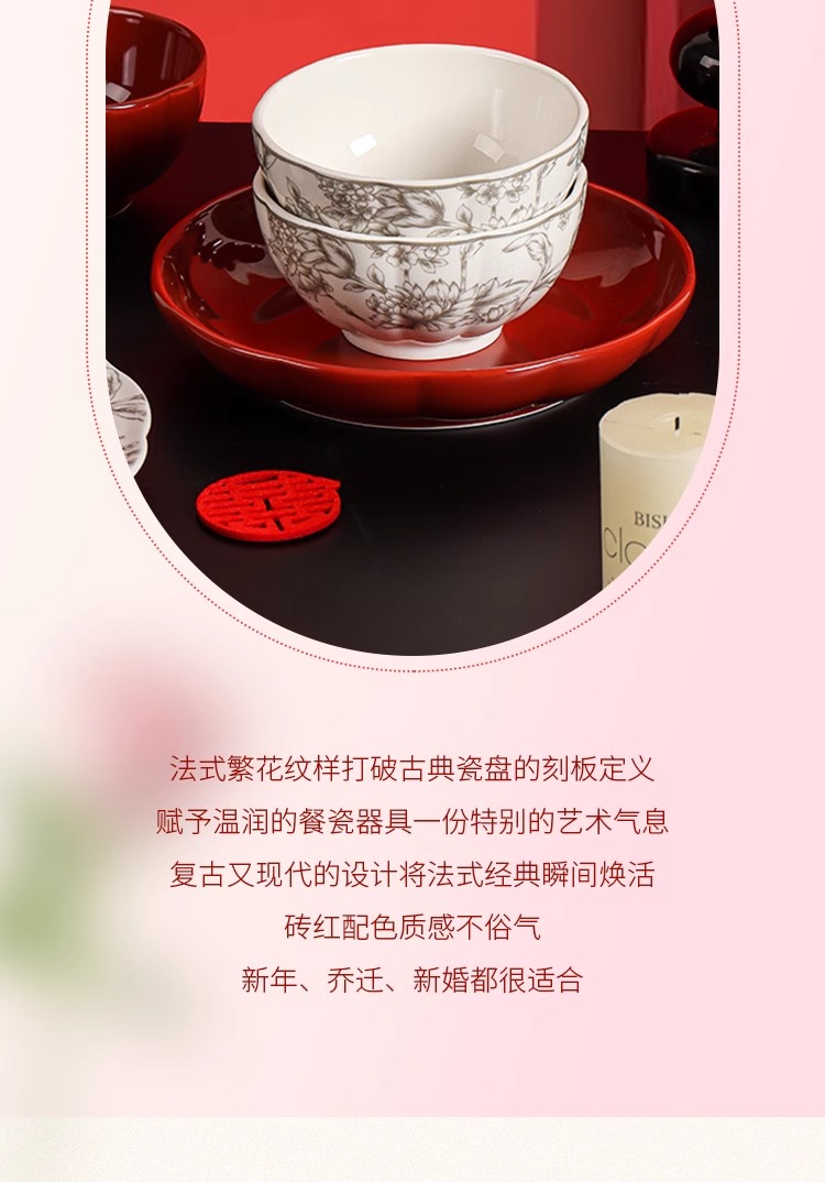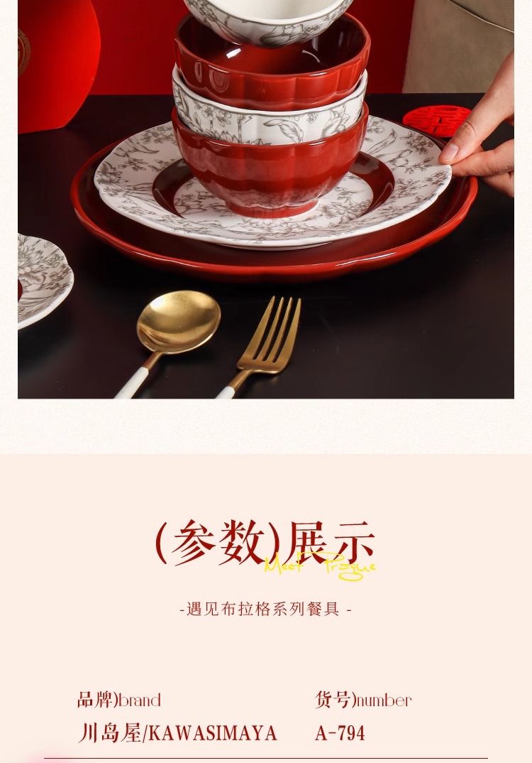 川岛屋 法式餐具红色碗套装 6人食19件套(红色) 1 份