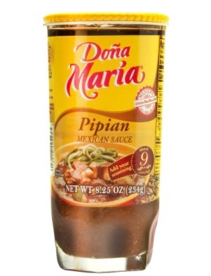 DONA MARIA Pipian is a condiment made from pumpkin seeds, fiery ancho chiles, and a blend of signature Mexican spices. It is typically used in Mexican recipes and adds a smooth and spicy taste. It is best used with chicken or pork dishes.