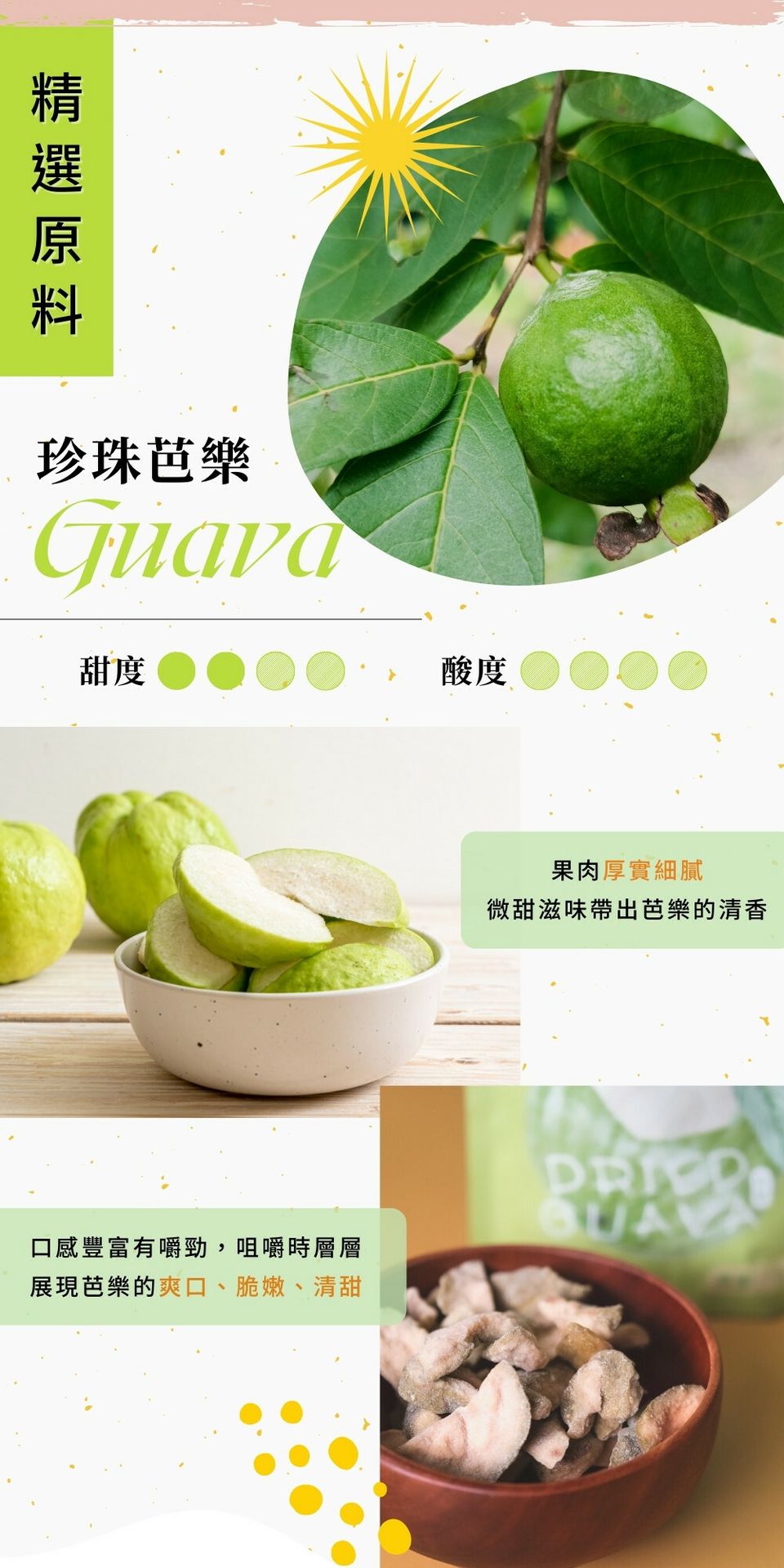 A mildly sweet taste that brings out the guava's natural fragrance