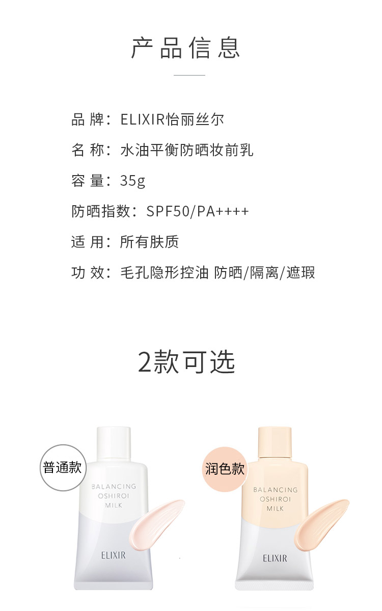 怡丽丝尔 水油平衡防晒乳 粉色润色款 35 克