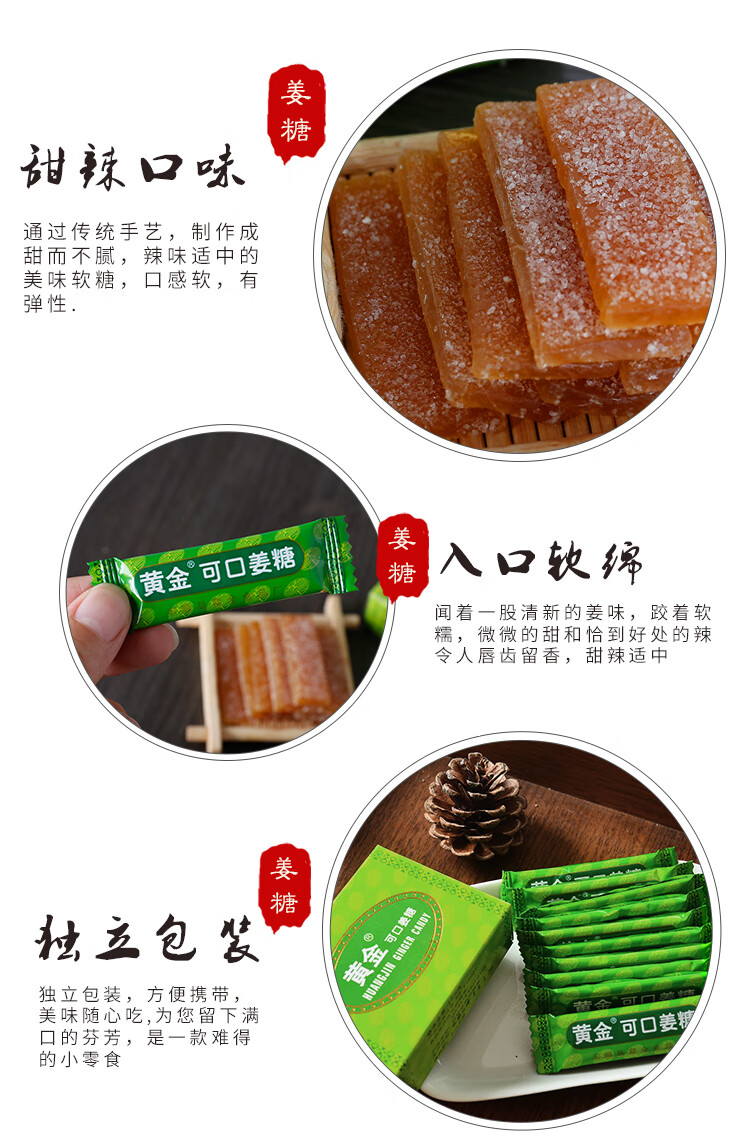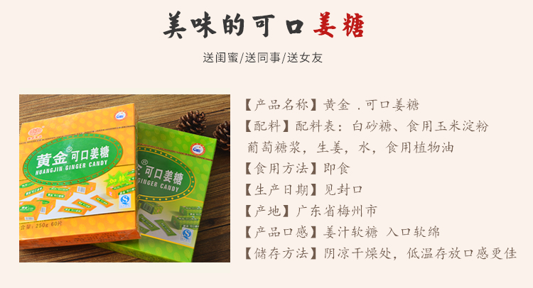黄金可口姜糖 广东梅州客家特产姜糖片姜汁软糖 手工老姜味姜糖 加辣250g