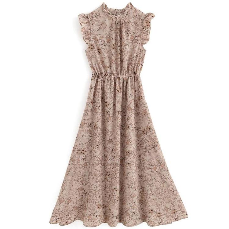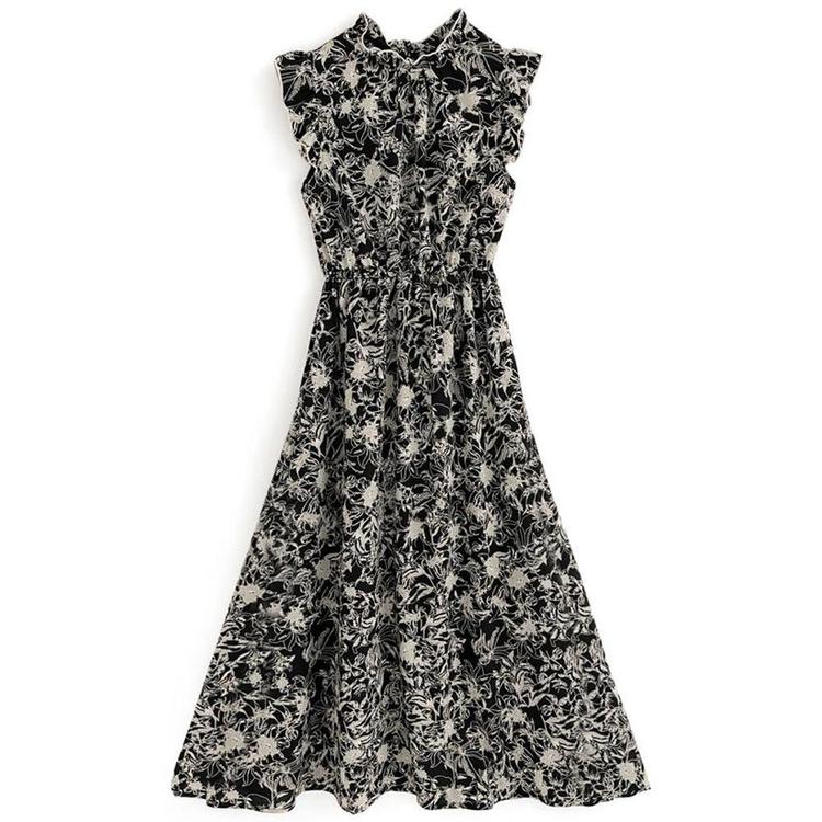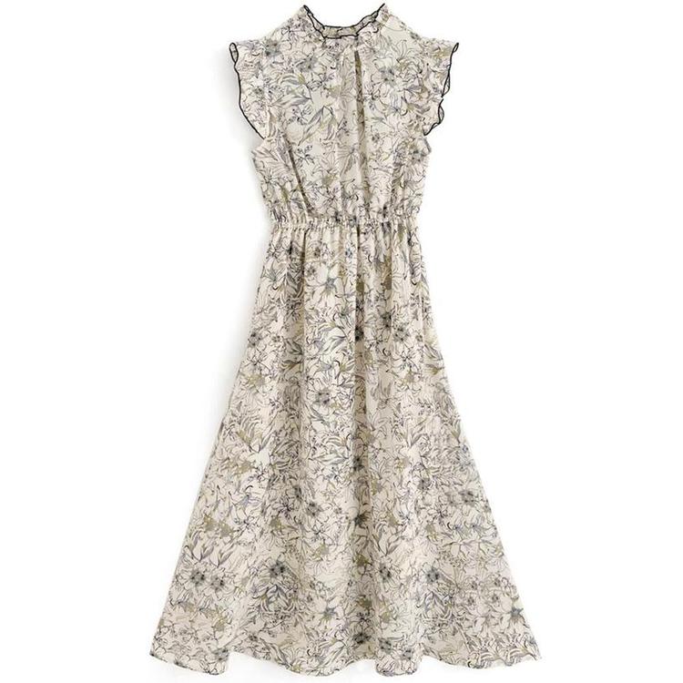 商品介绍:这是一款以A字型设计展现戏剧性魅力的花卉图案连衣裙。肩部和脸部周围的设计使得整体看起来更加纤细,搭配了色彩柔和的荷叶边装饰。优质的弹性腰带为整体造型增添了层次感。清爽的无袖设计让整体搭配显得优雅而不显得过于甜美。 由于裁剪的关系,图案的呈现可能与照片略有不同。 配有弹性腰带。 裙子部分仅有内衬。 尺码 S: 衣长(cm)=126, 胸围(cm)=43, 肩宽(cm)=31, 袖フリル丈(cm)=4.5 尺码 M: 衣长(cm)=126, 胸围(cm)=45, 肩宽(cm)=32, 袖フリル丈(cm)=4.5 尺码 L: 衣长(cm)=126, 胸围(cm)=47, 肩宽(cm)=33, 袖フリル丈(cm)=4.5