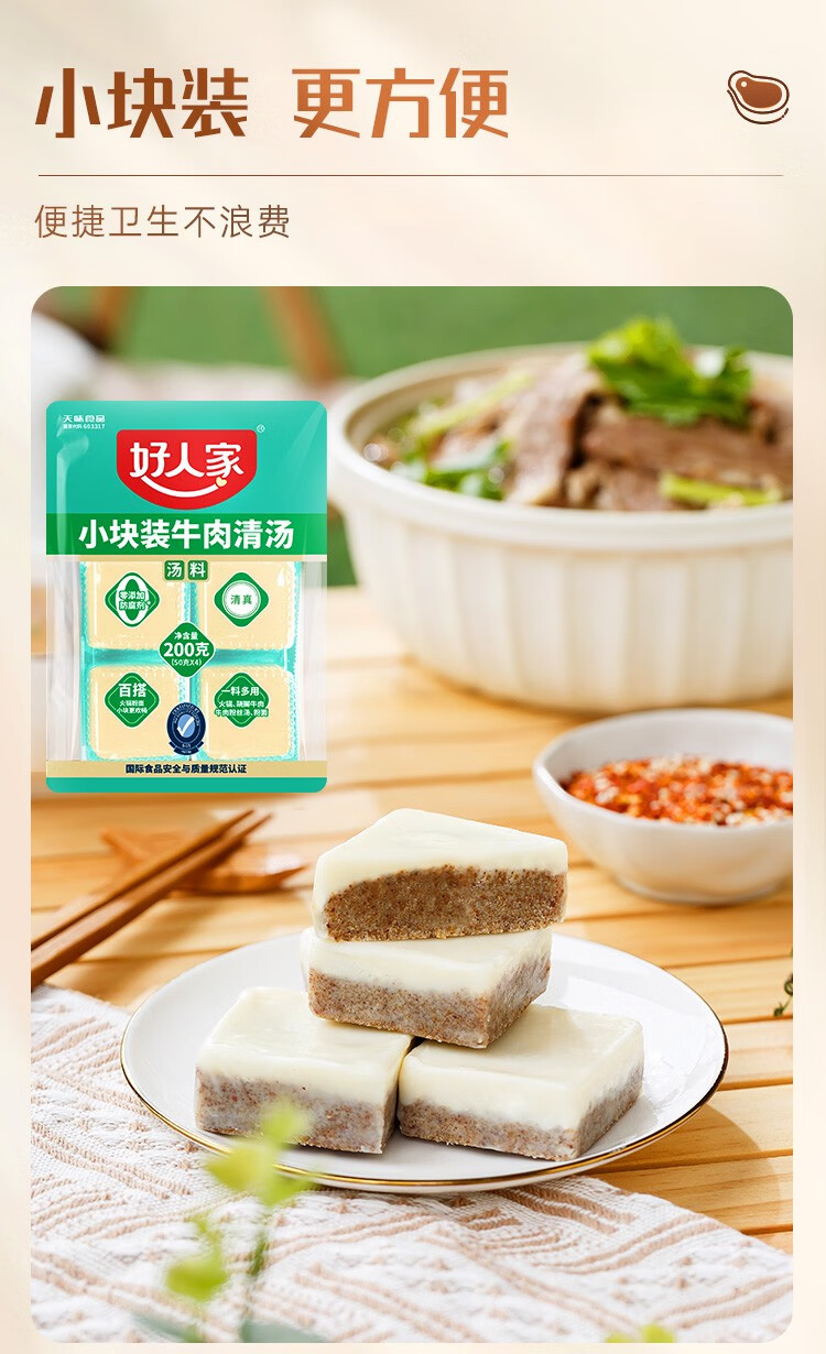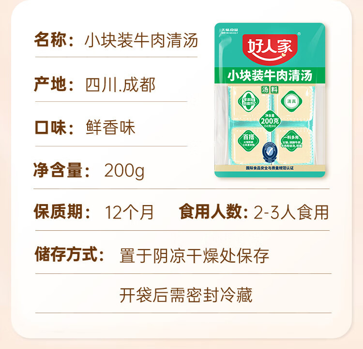 好人家 牛肉清汤料 0添加小块装火锅底料 2-3人 200 克