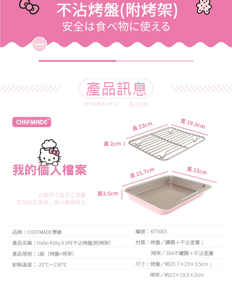 Hello Kitty Pink Baking Tray w/Golden Rack 1 개입