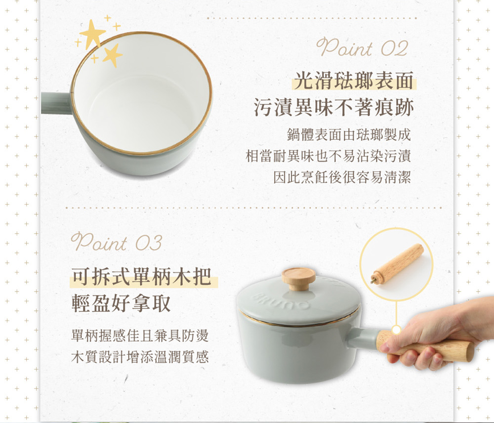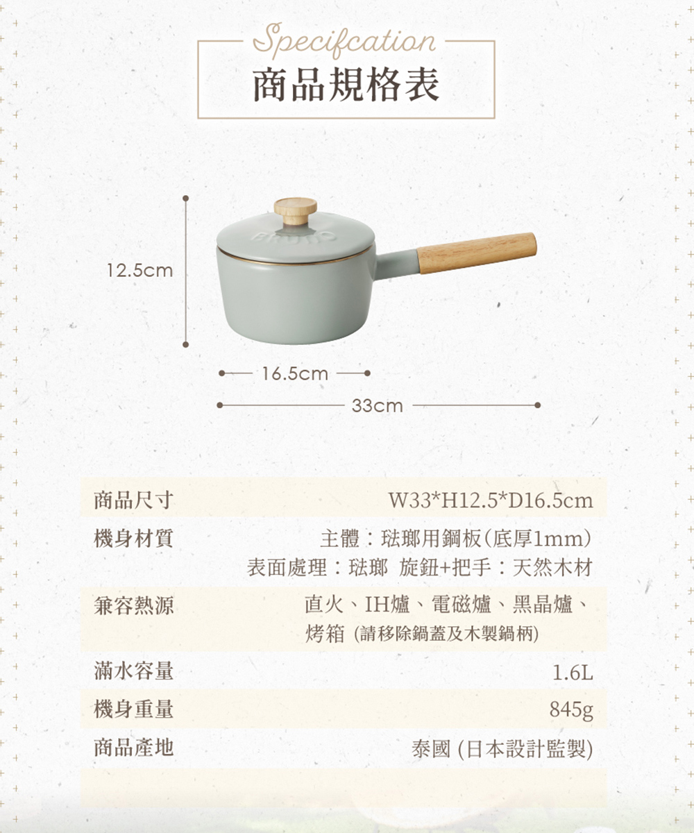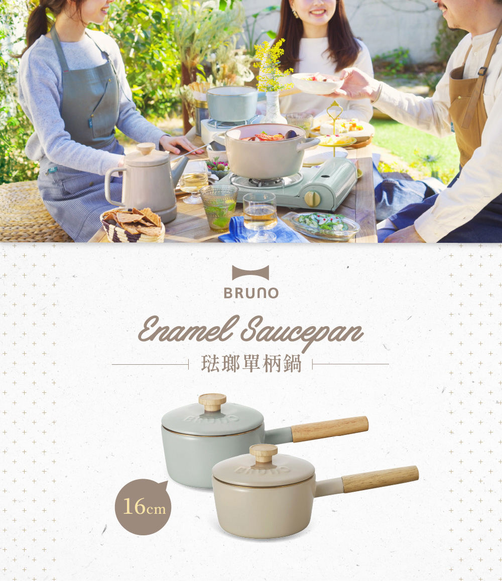 日本 珐琅工艺锅具【BRUNO】珐琅单柄汤锅 16cm BHK281:迷雾灰 845 克