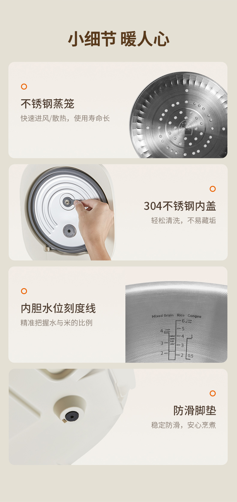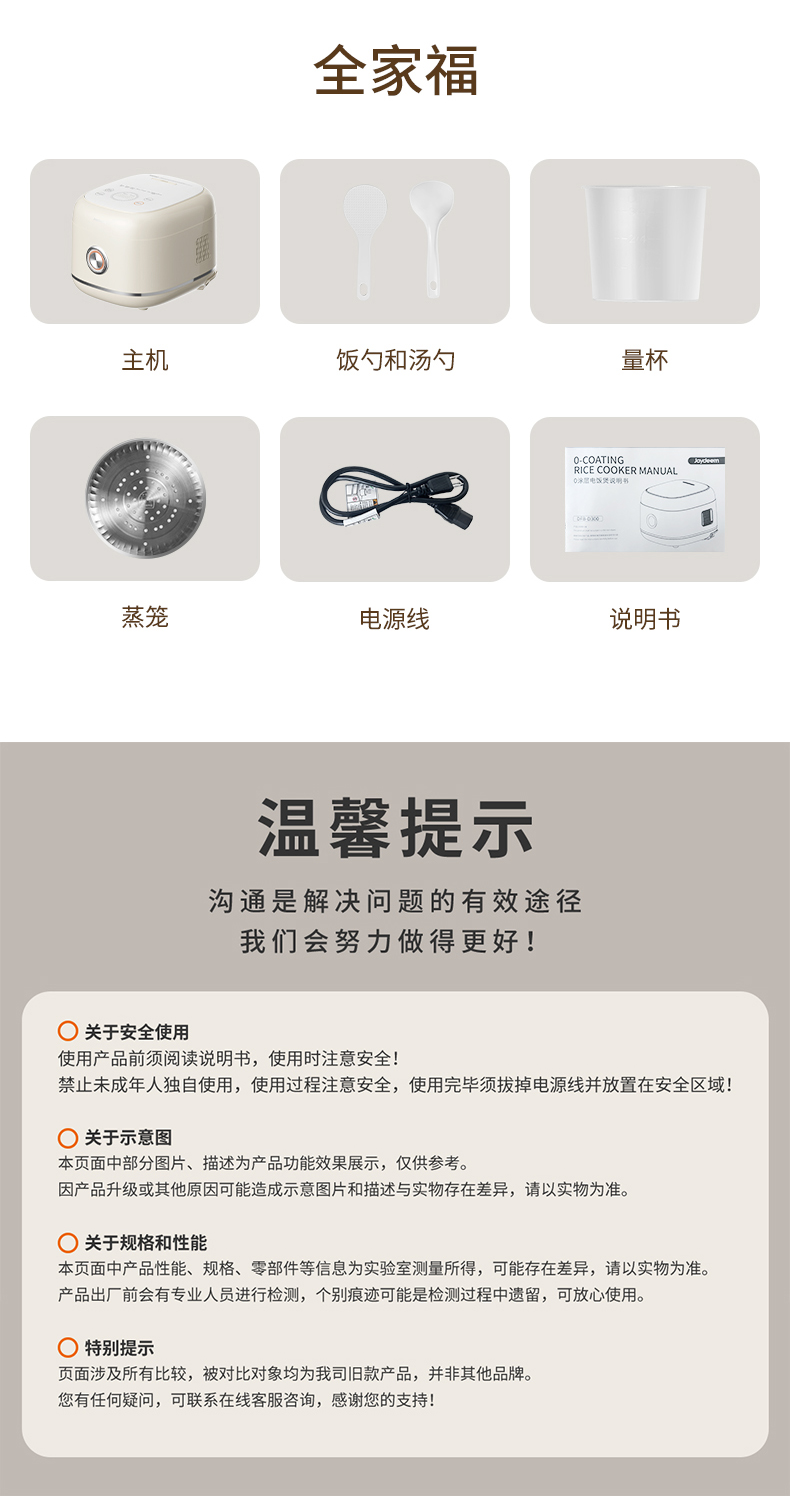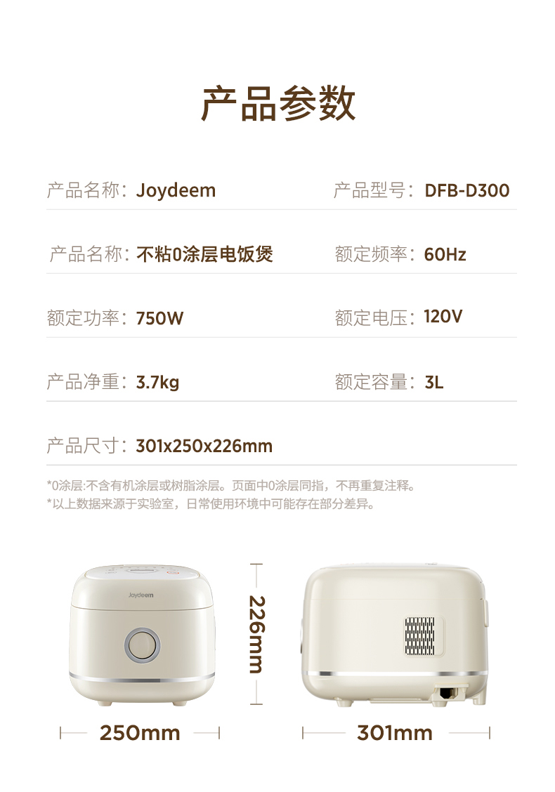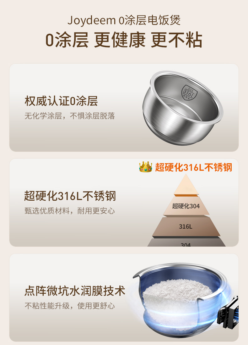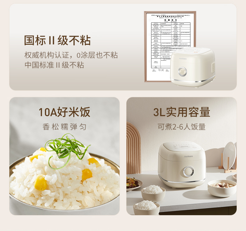 Joydeem0涂层电饭煲不锈钢内胆 奶油白 3L 1 个