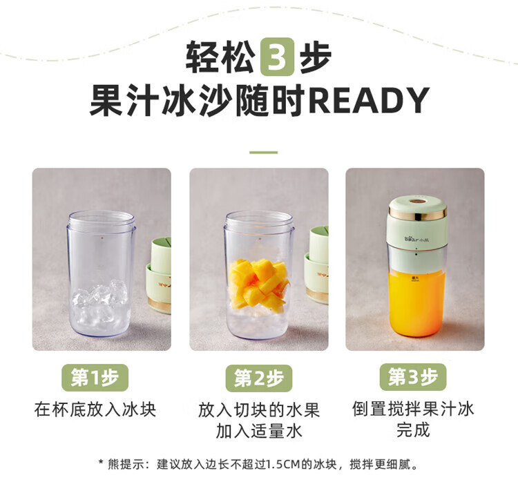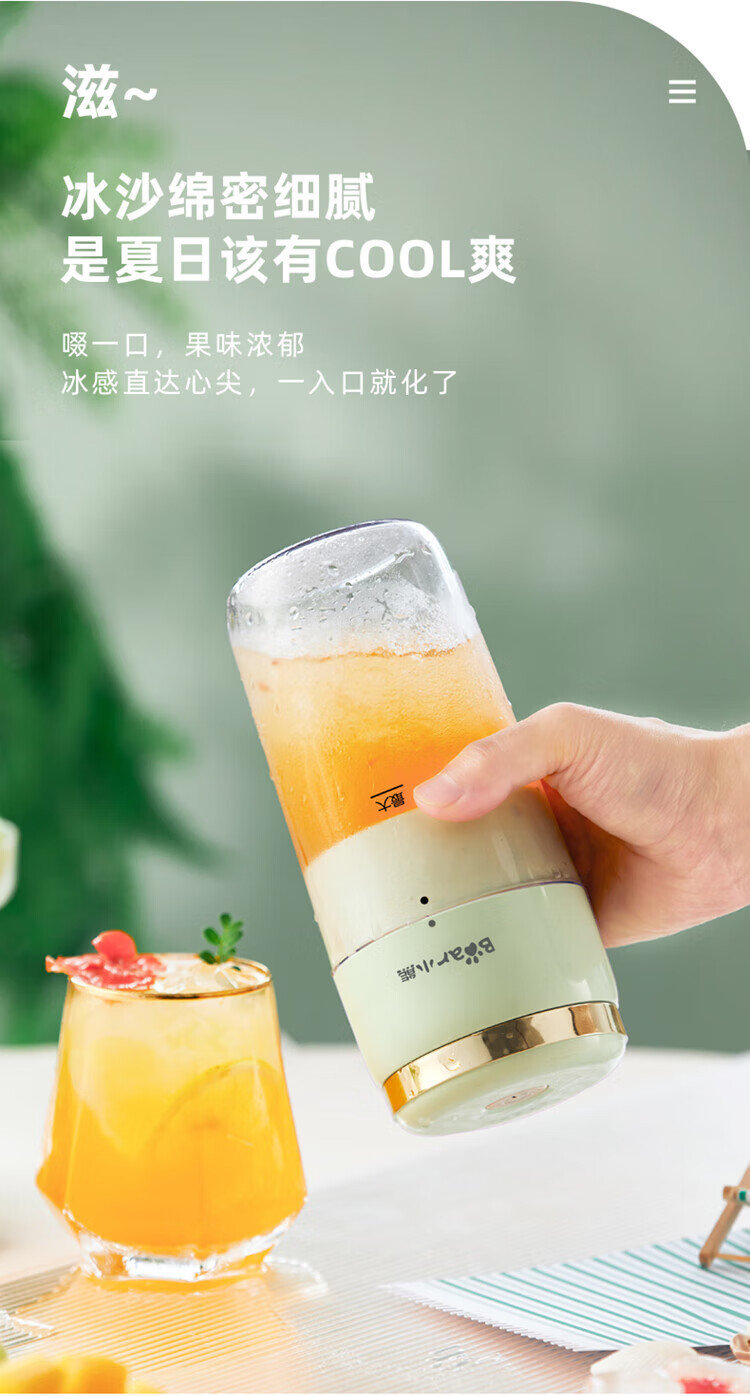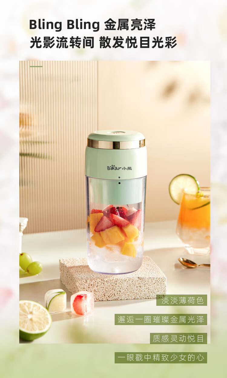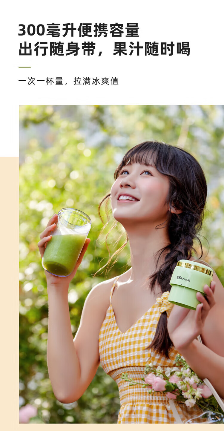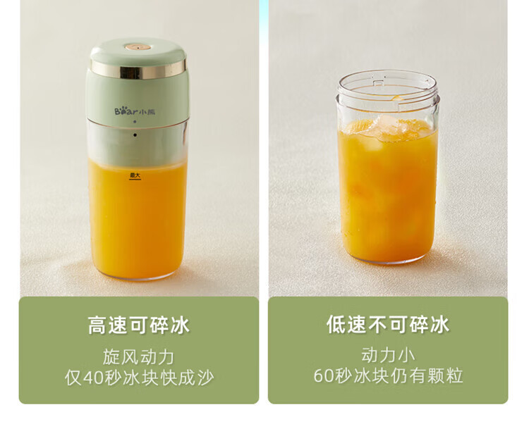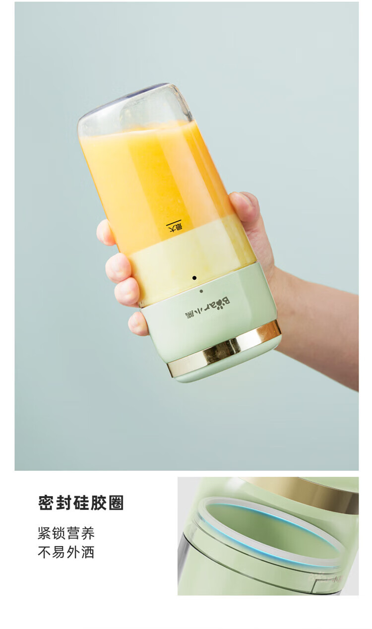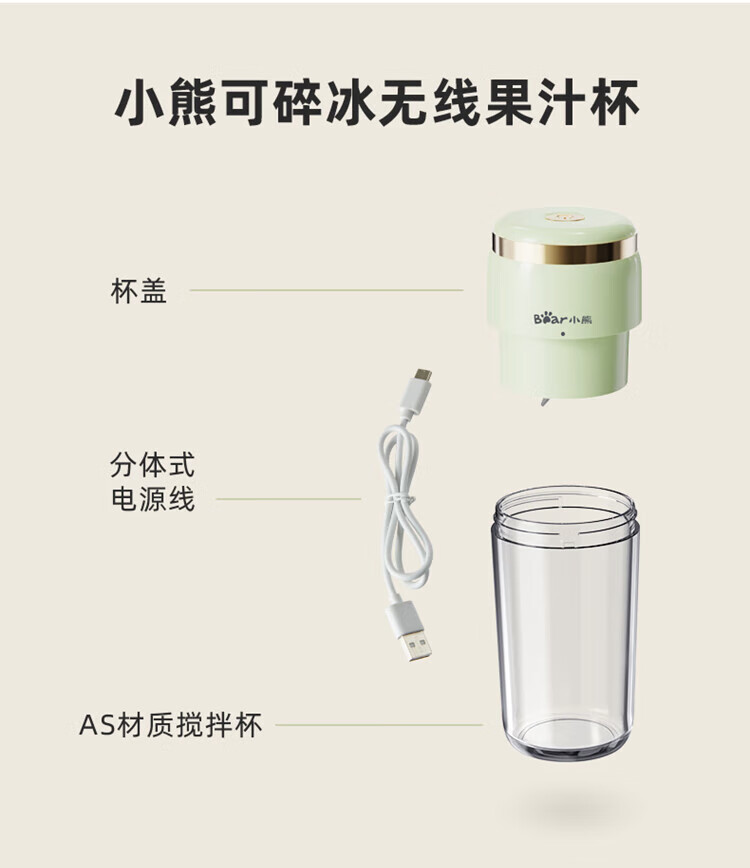 Bear小熊 榨汁機榨汁杯 USB充電 便攜式果汁杯 迷你料理機 綠色 300ml 1 份