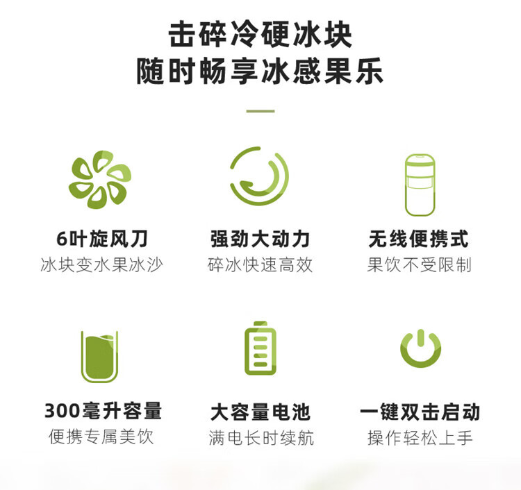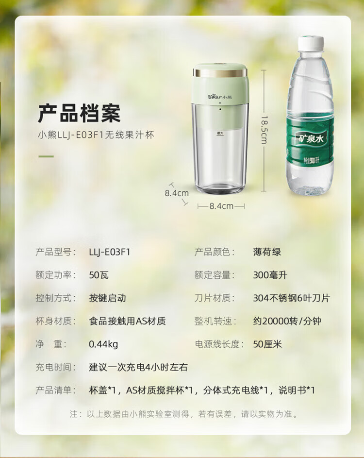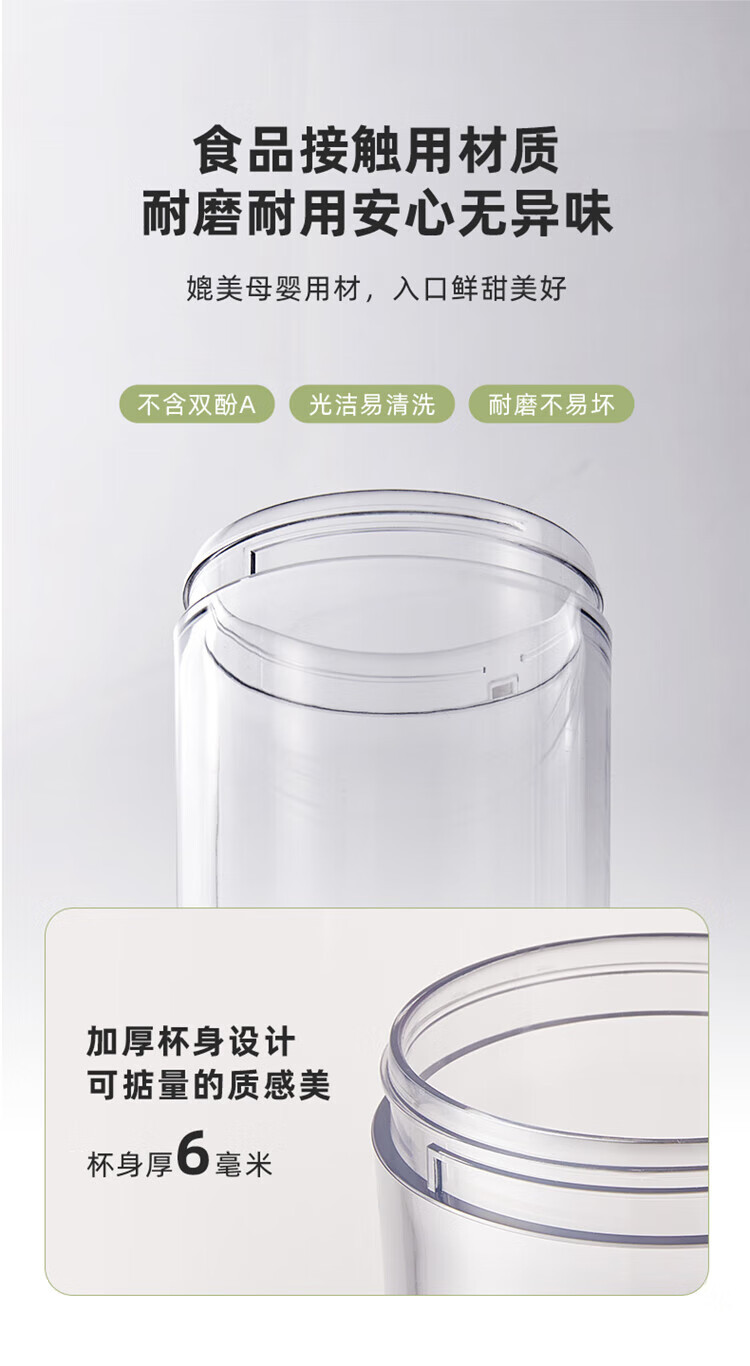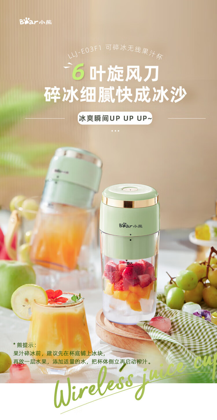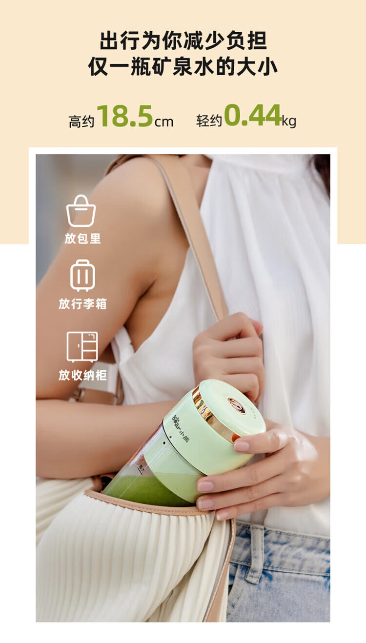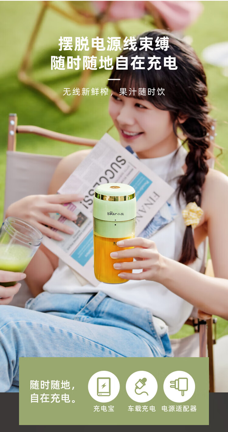 Bear小熊 榨汁機榨汁杯 USB充電 便攜式果汁杯 迷你料理機 綠色 300ml 1 份