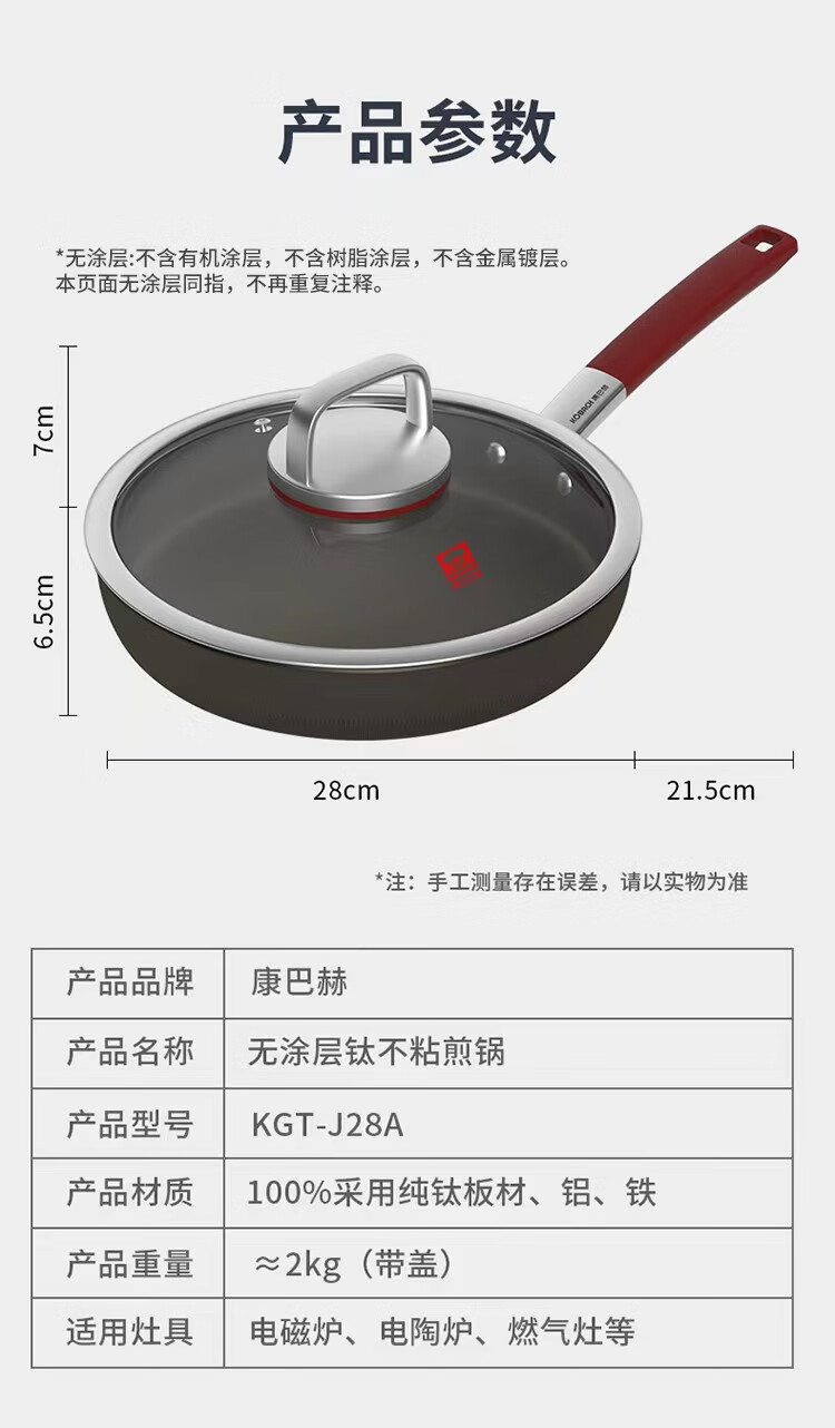 康巴赫 纯钛无涂层不粘煎锅-套装28cm 1 个
