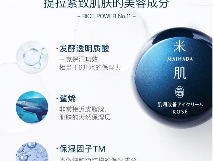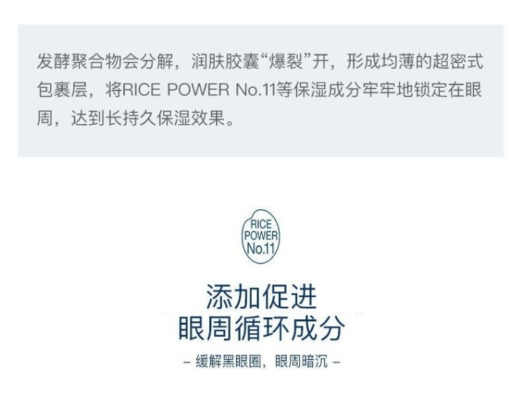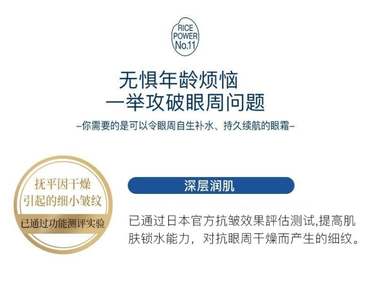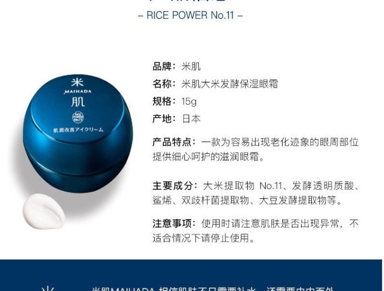 - Instructions: A medicated cream for eyes that contains rice energy No.11(*) in a high concentration. Ceramide can be produced in the stratum corneum of the eye area that is prone to dryness, and the water-locking function can be improved. The rich, creamy texture pampers the sensitive eye area, where skin is thinner. A moisturizing, easy-to-spread cream that makes fine lines (*) caused by dryness less noticeable, leaving the skin around the eyes bright and elastic. Fragrance-free, coloring-free, weakly acidic *1 Compared with series products *2 Efficacy evaluation test passed