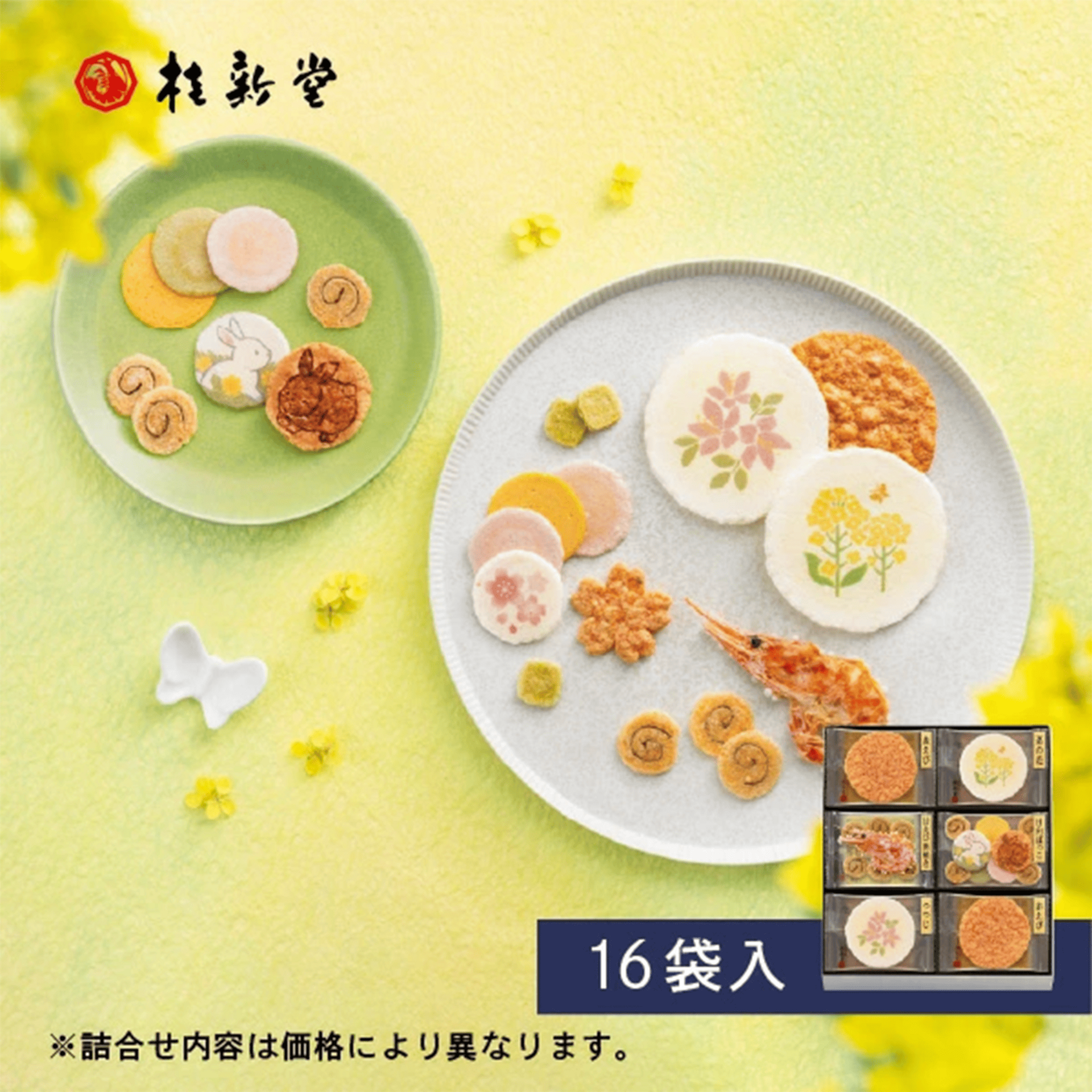 油菜花虾饼 ×3袋。杜鹃花虾饼 ×3袋。春日暖阳综合装 ×2袋(白兔造型1枚・棕兔造型1枚・梅味虾饼1枚・南瓜味虾饼1枚・抹茶味虾饼1枚・旋纹饼4枚)。甘虾滨烧组合 ×2袋(甘虾滨烧1枚・旋纹饼6枚)。炙烤红虾虾饼 ×6袋。