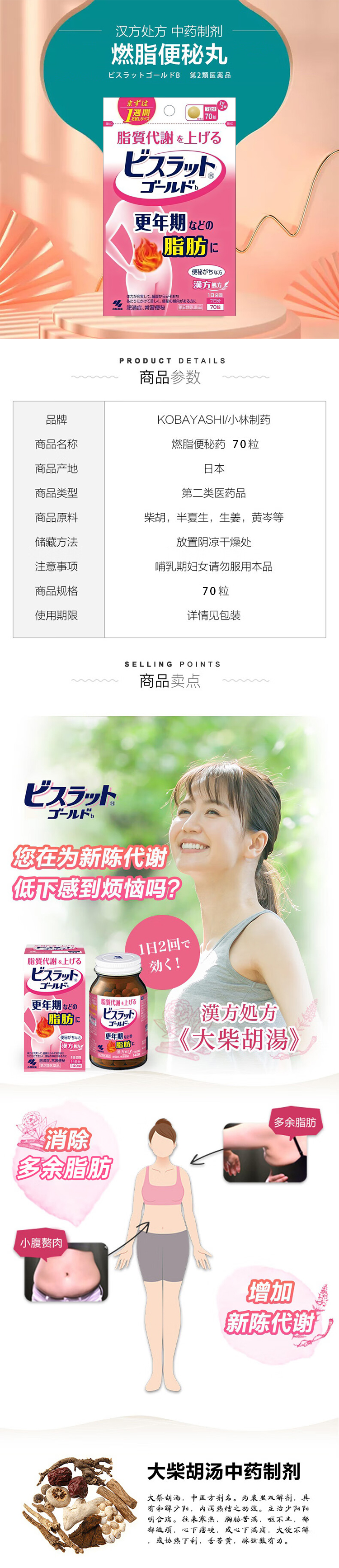 【日本直送】kobayashi小林制药 燃脂便秘肥胖肠胃不适脂肪堆积70粒 大阪实体药妆店直送 1 盒