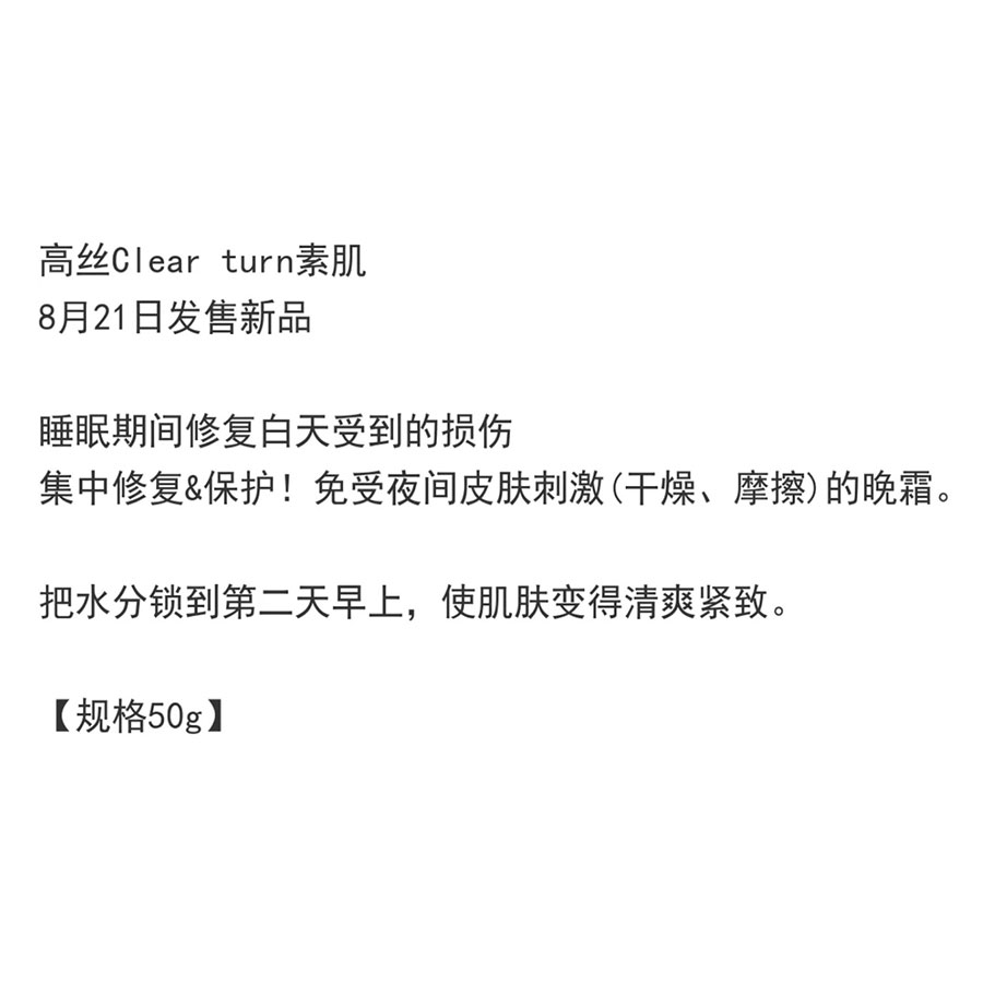 日本 高丝 Clear Turn 素肌 晚霜 预防干燥 饱满光泽 50 克