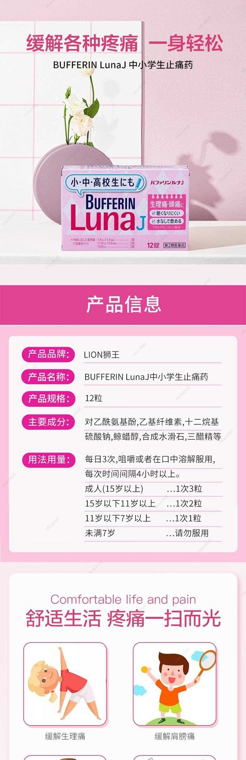 狮王 中小学生 头痛 生理痛 止痛药 12粒 1 份