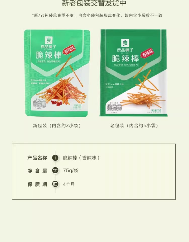 良品鋪子脆辣棒香辣味辣條辦公室休閒解饞零食小吃豆皮 75 克