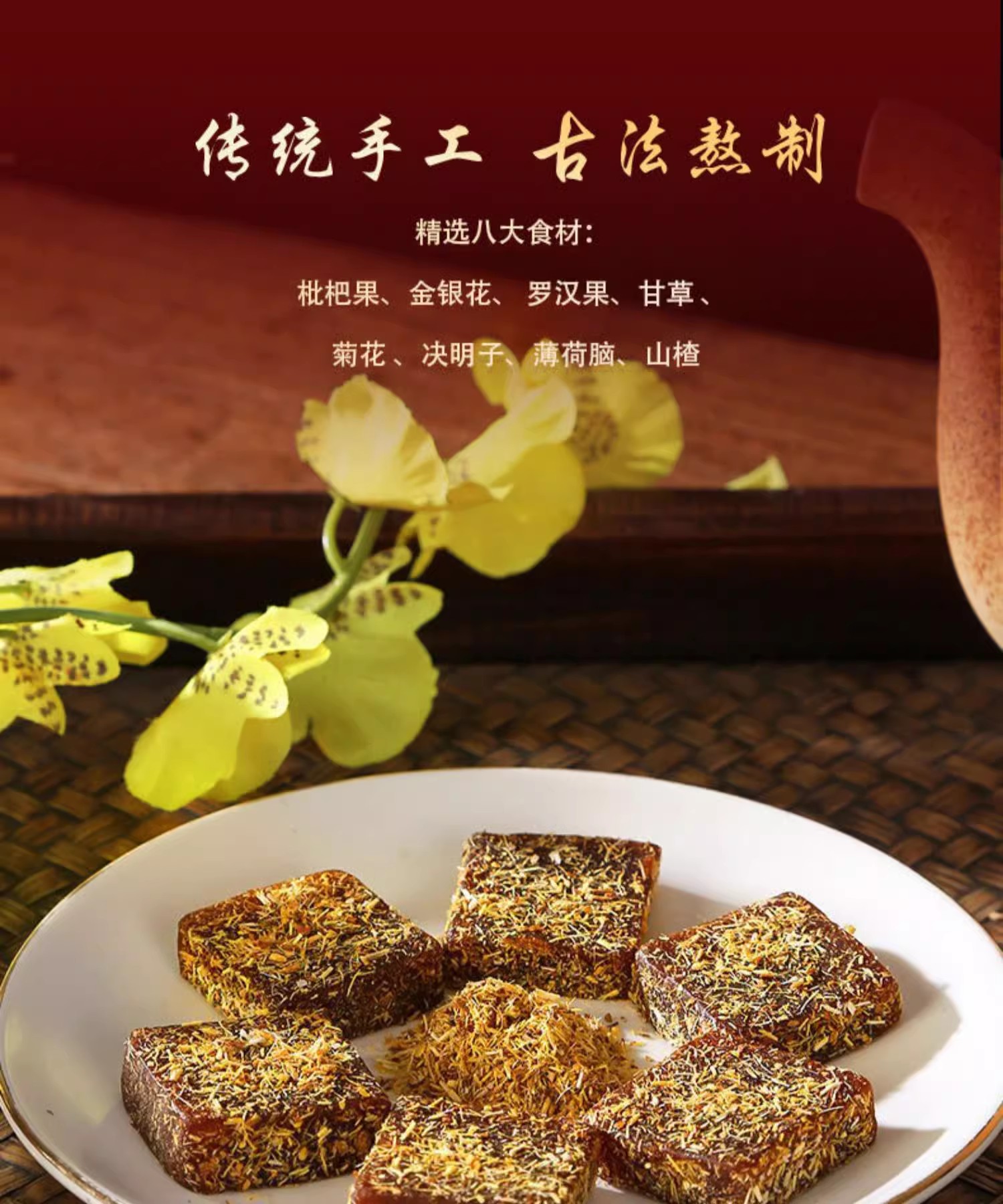 无蔗糖甘草枇杷膏果糕罗汉果山楂糕零食休闲小吃清凉糕点传统点心1袋/10包=100克