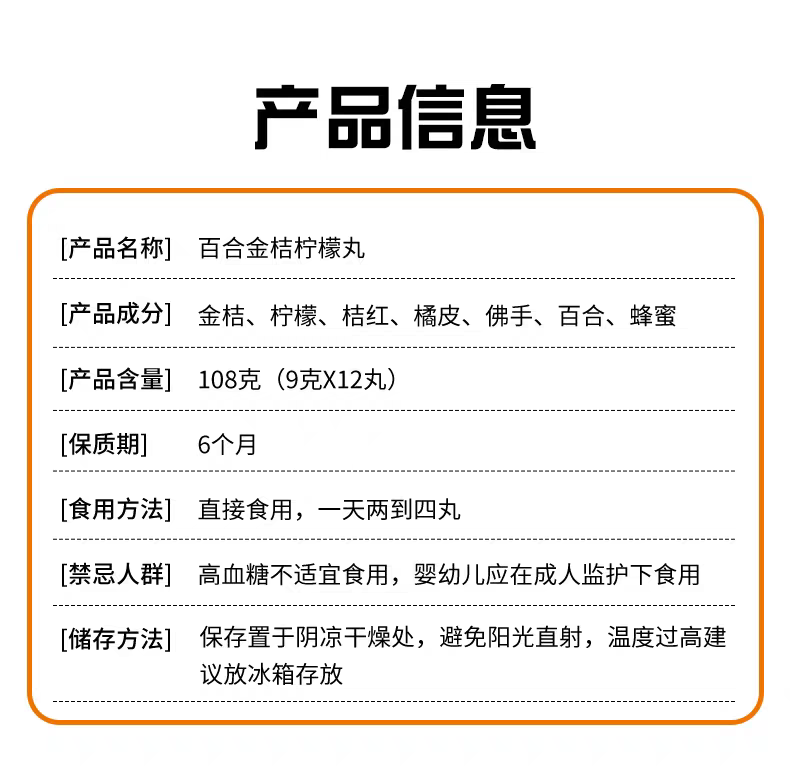 百合金桔柠檬丸 祛痰丸 108 克