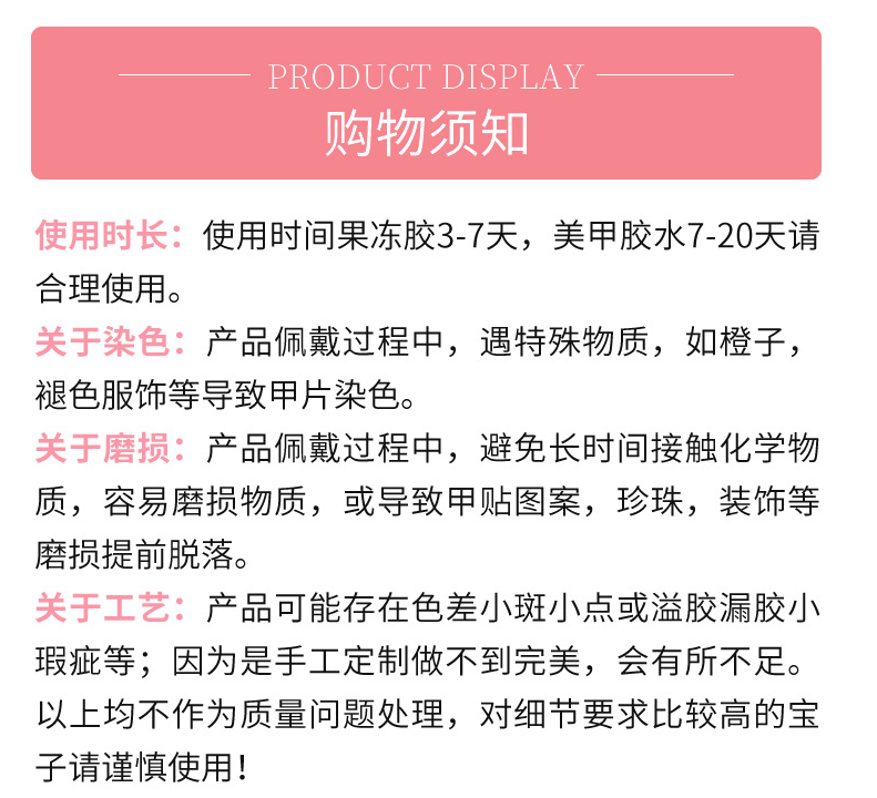 - 10 Pieces of press on nails in all different sizes to fit your fingers