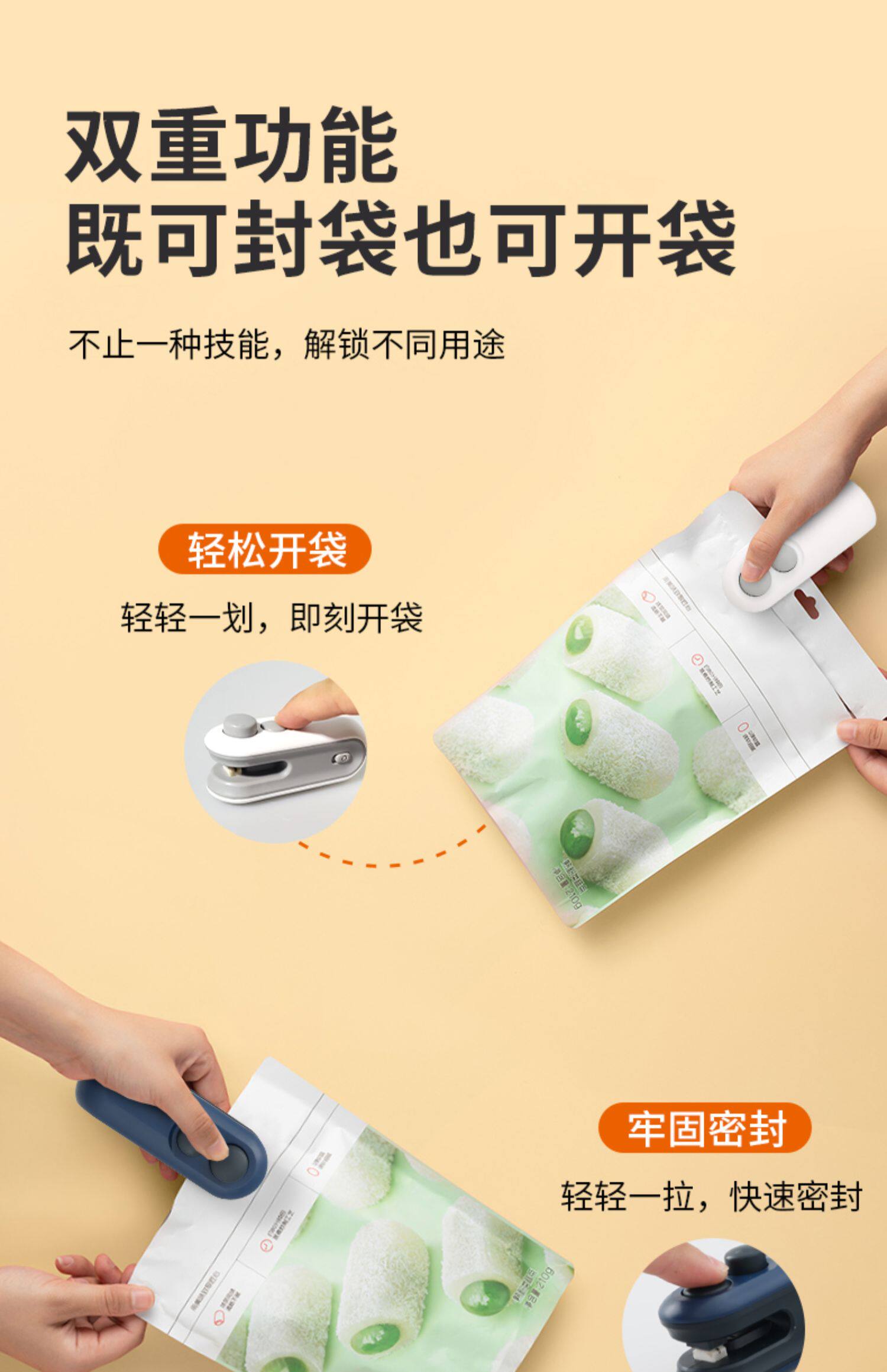 双重功能,可开袋可封袋