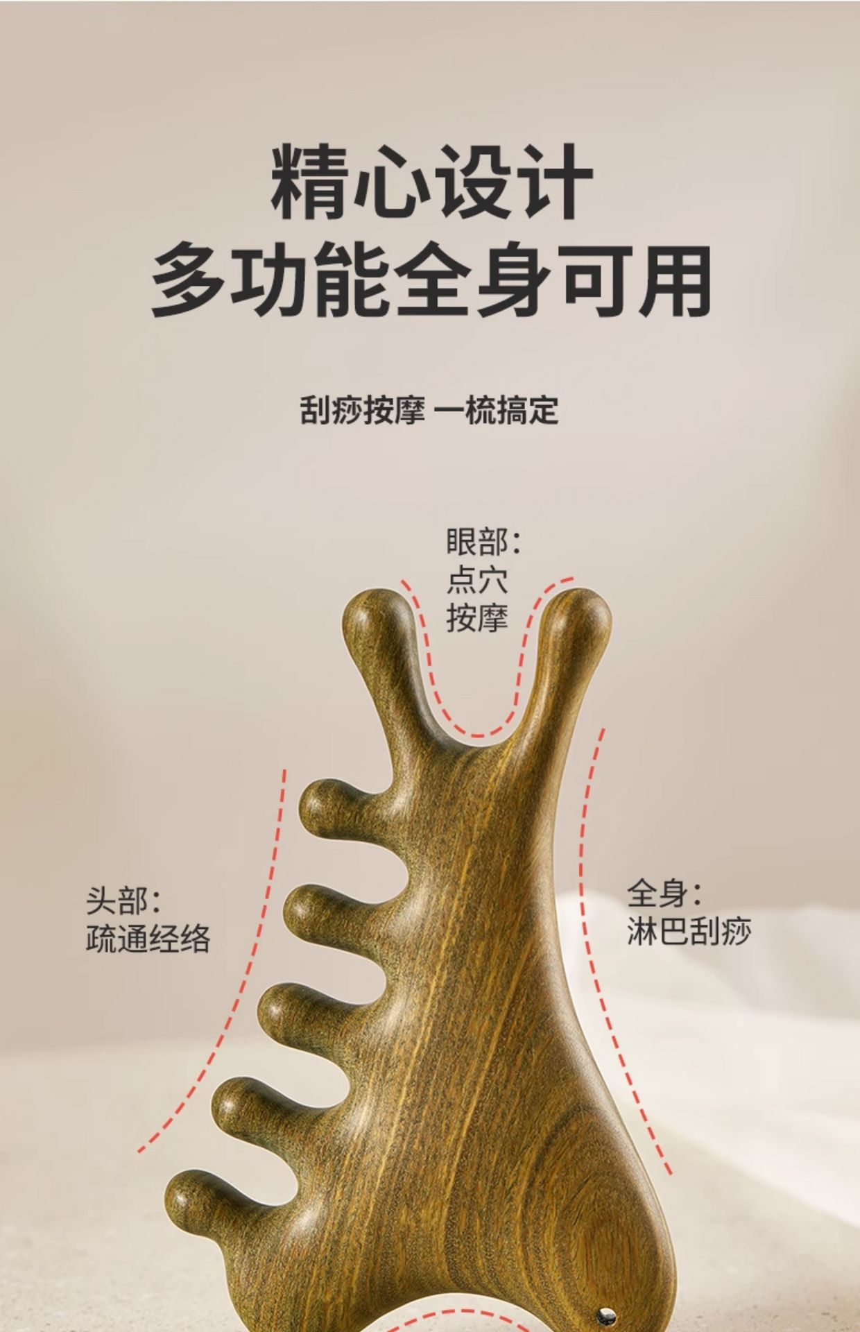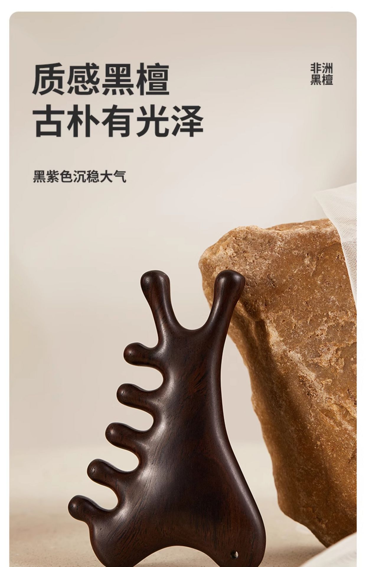 Multi functional natural ebony massage comb 1 count