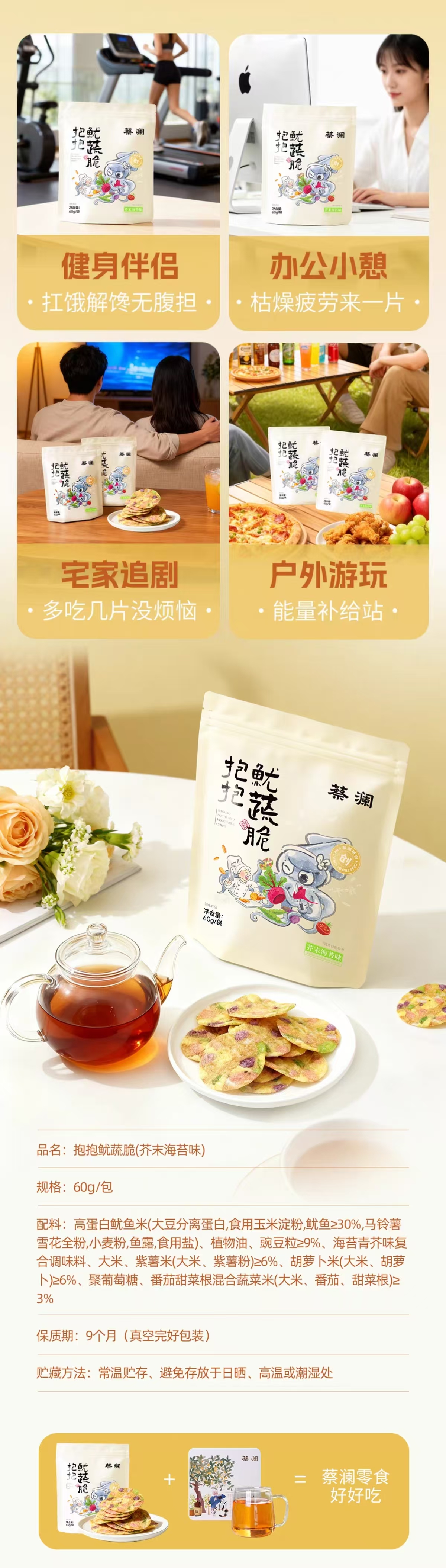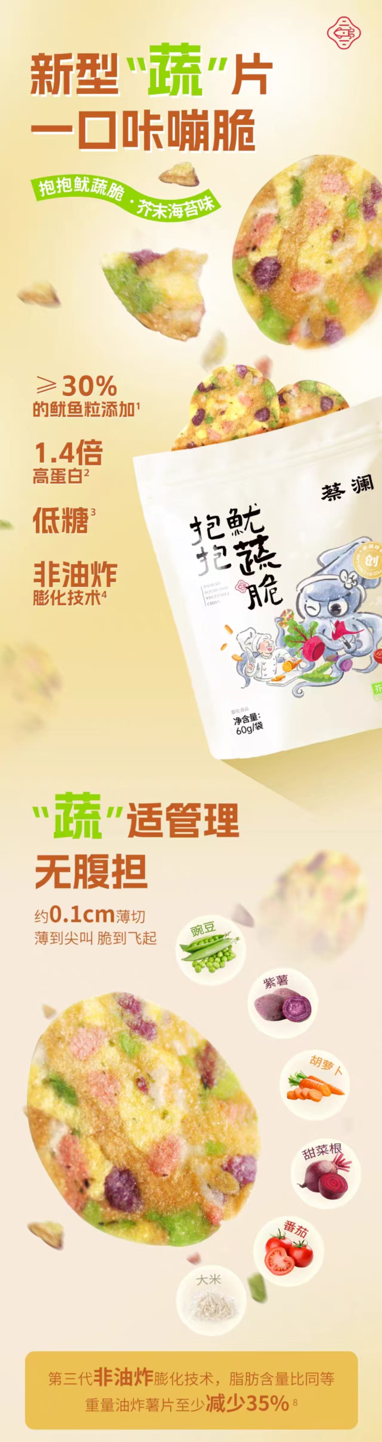 蔡澜【3袋 芥末海苔味】 抱抱鱿蔬脆 3 包