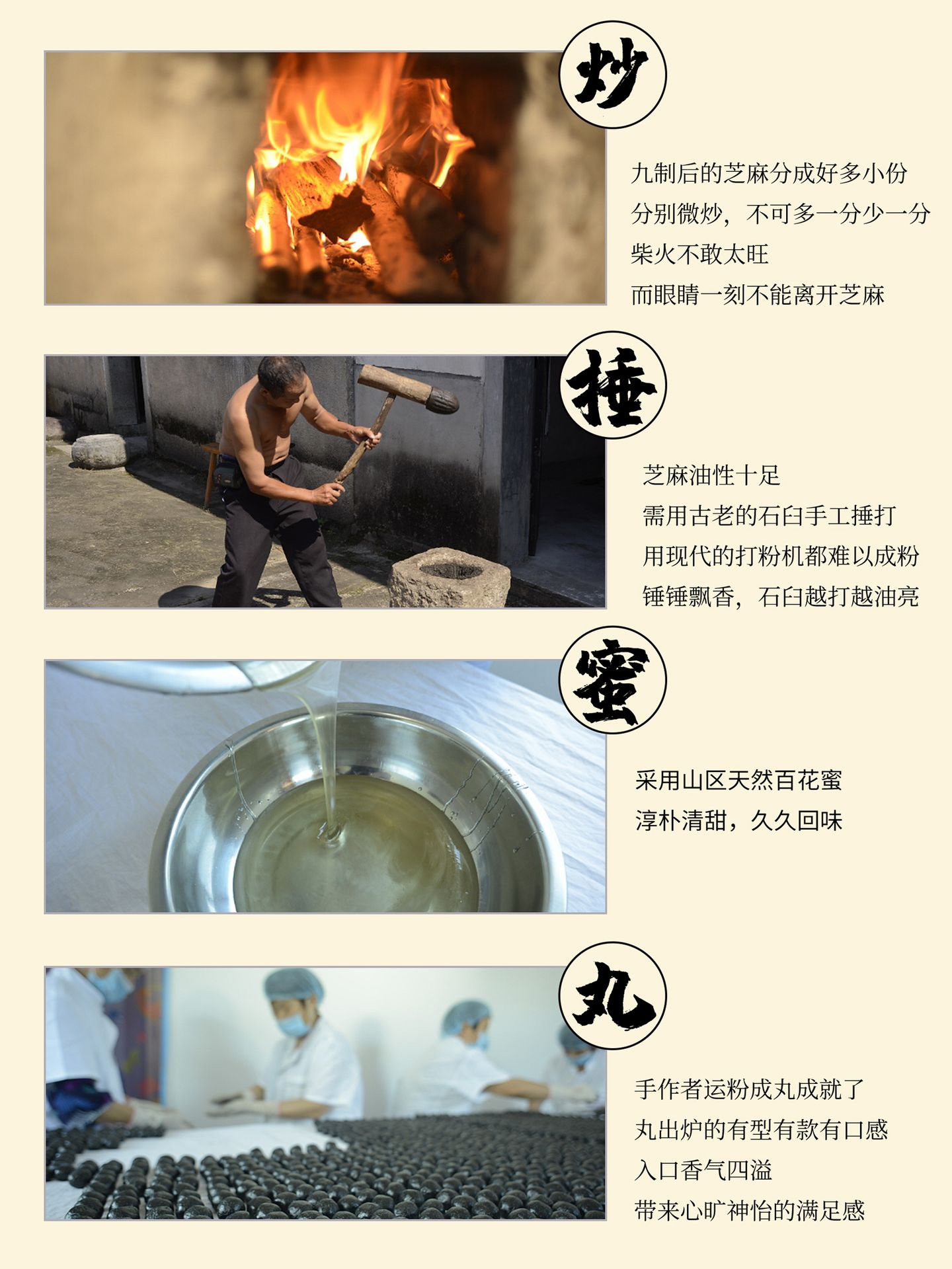 九蒸九晒,明火柴烧,石臼手工捶打