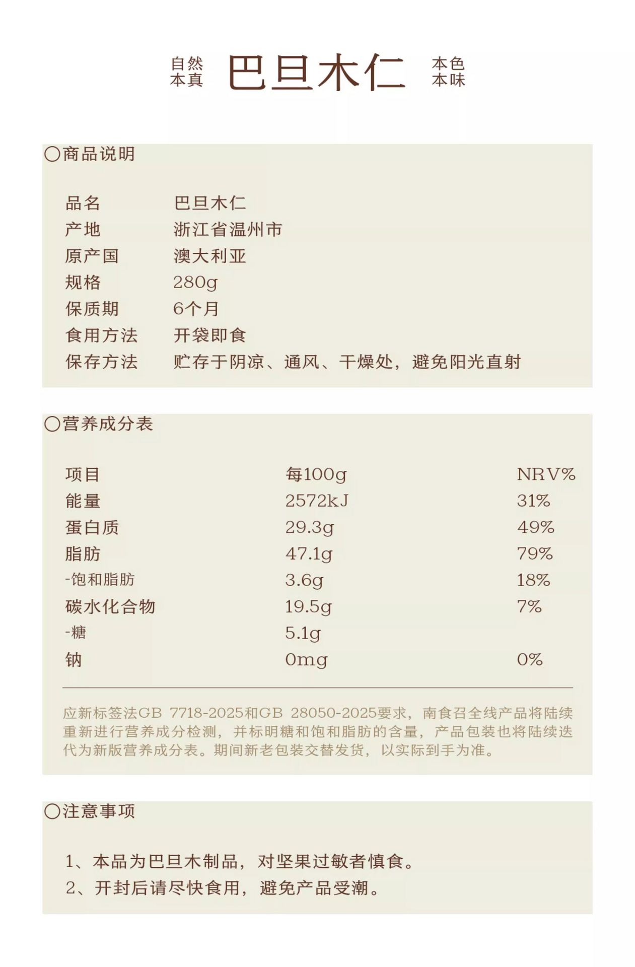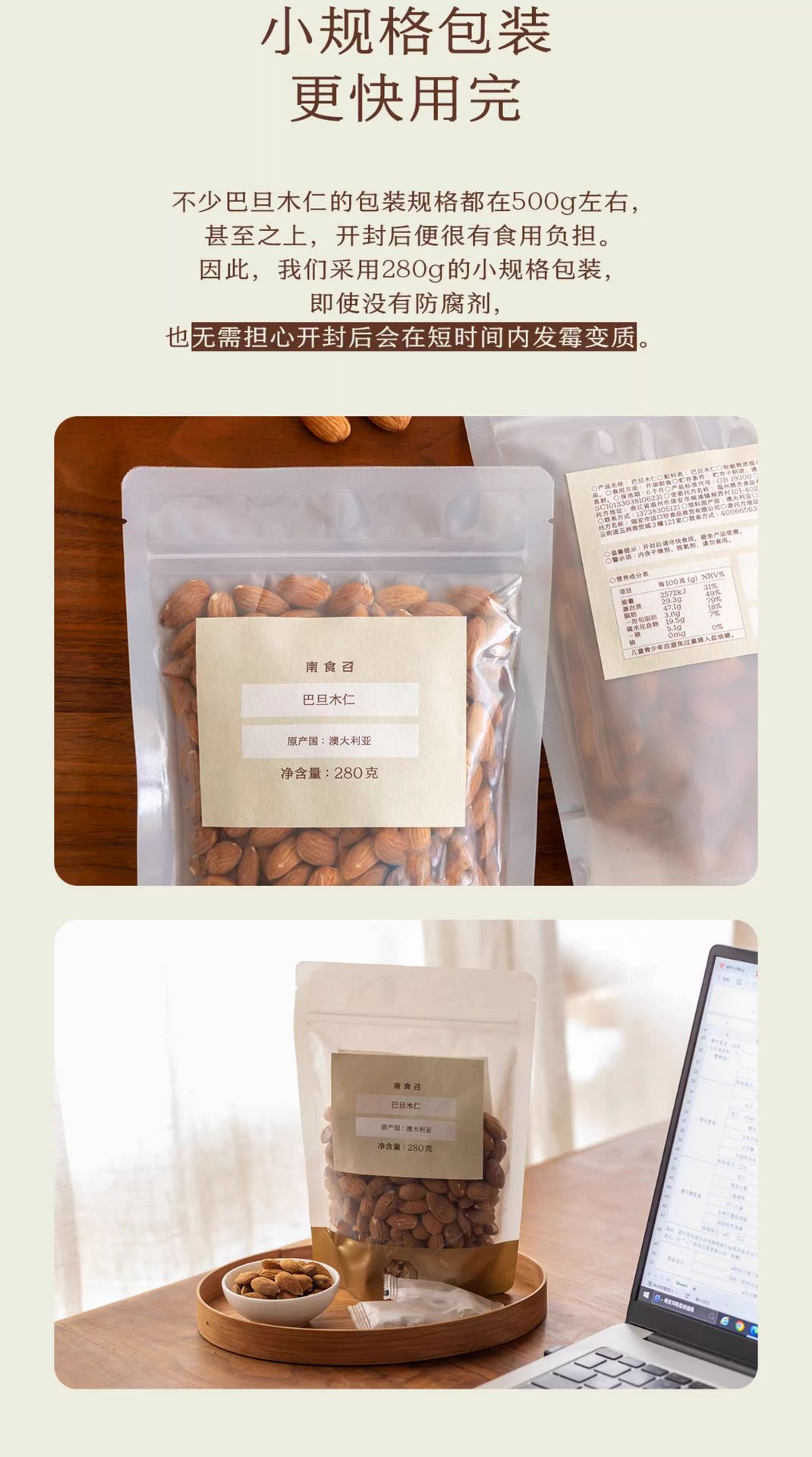南食召 巴旦木仁280g澳洲上乘品种坚果果仁年货 280 克