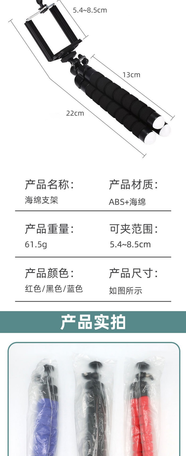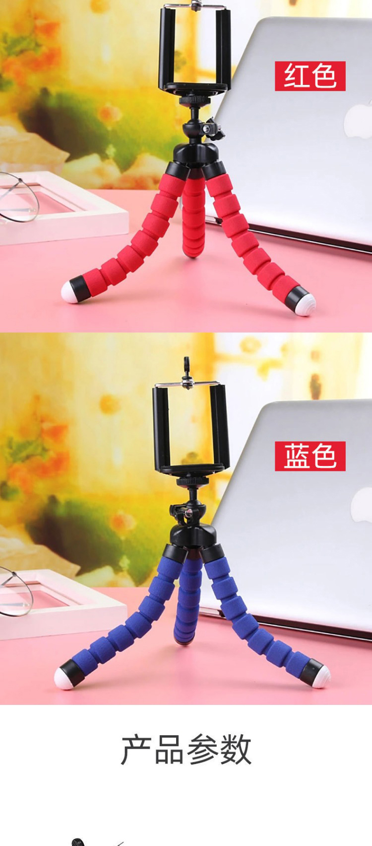 便携八爪鱼手机支架含一字夹 蓝牙自拍器 小号蓝色 1 份