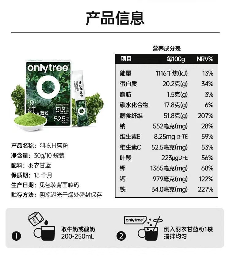 Onlytree【凍乾羽衣甘藍】3盒30條1個月囤貨!1次1條頂上半斤蔬菜 高膳食纖維高維C 低脂肪 搭配牛奶/酸奶更好喝 90 克