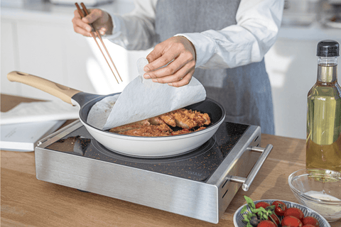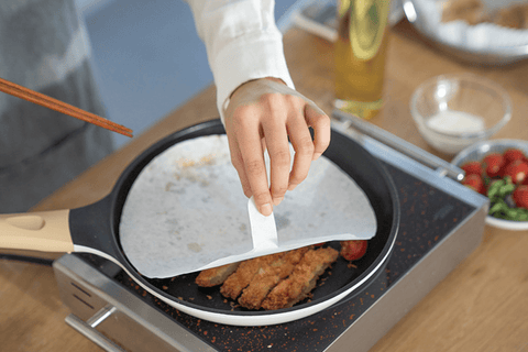 All it takes is one sheet of this paper to keep your kitchen oil splatter-free! Just place a sheet of pan cover when cooking meat or fish in your frying pan, and it will soak in the oil droplets and steam that can mess up your cooking area.