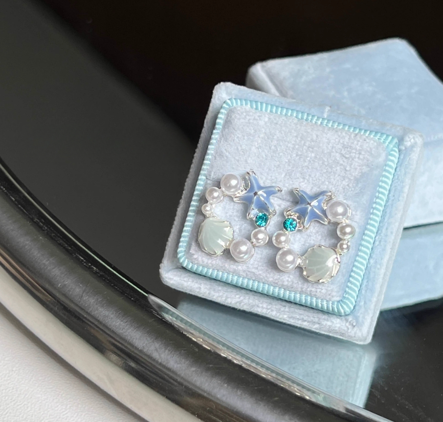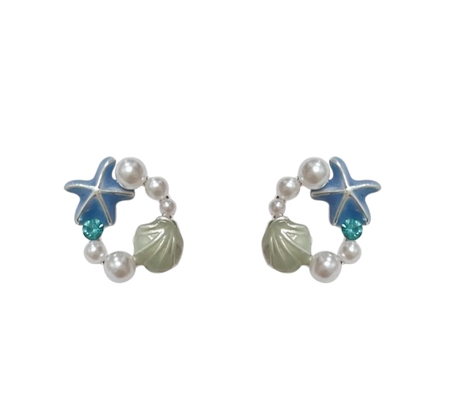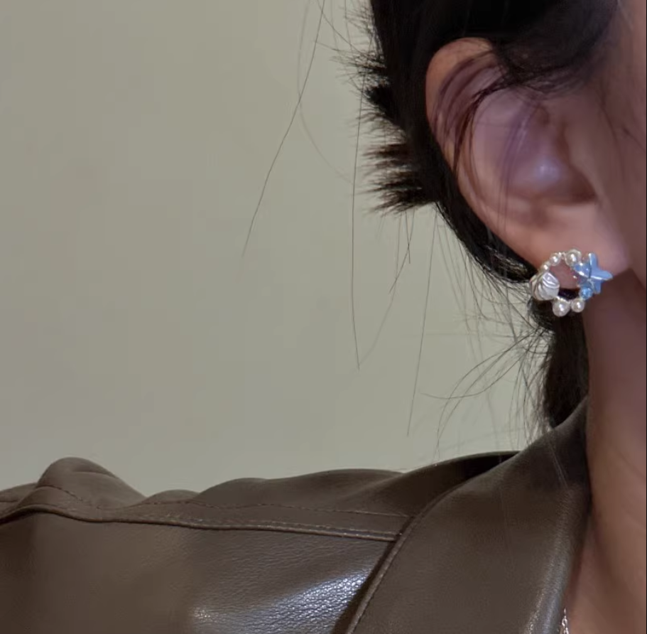 Pearl Shell Starfish Stud Earrings 1 cái