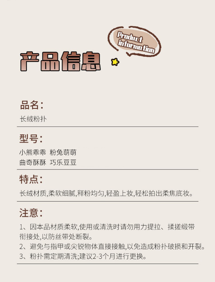 Pink Rabbit Cute, Long Velvet Powder Puff 1 phần