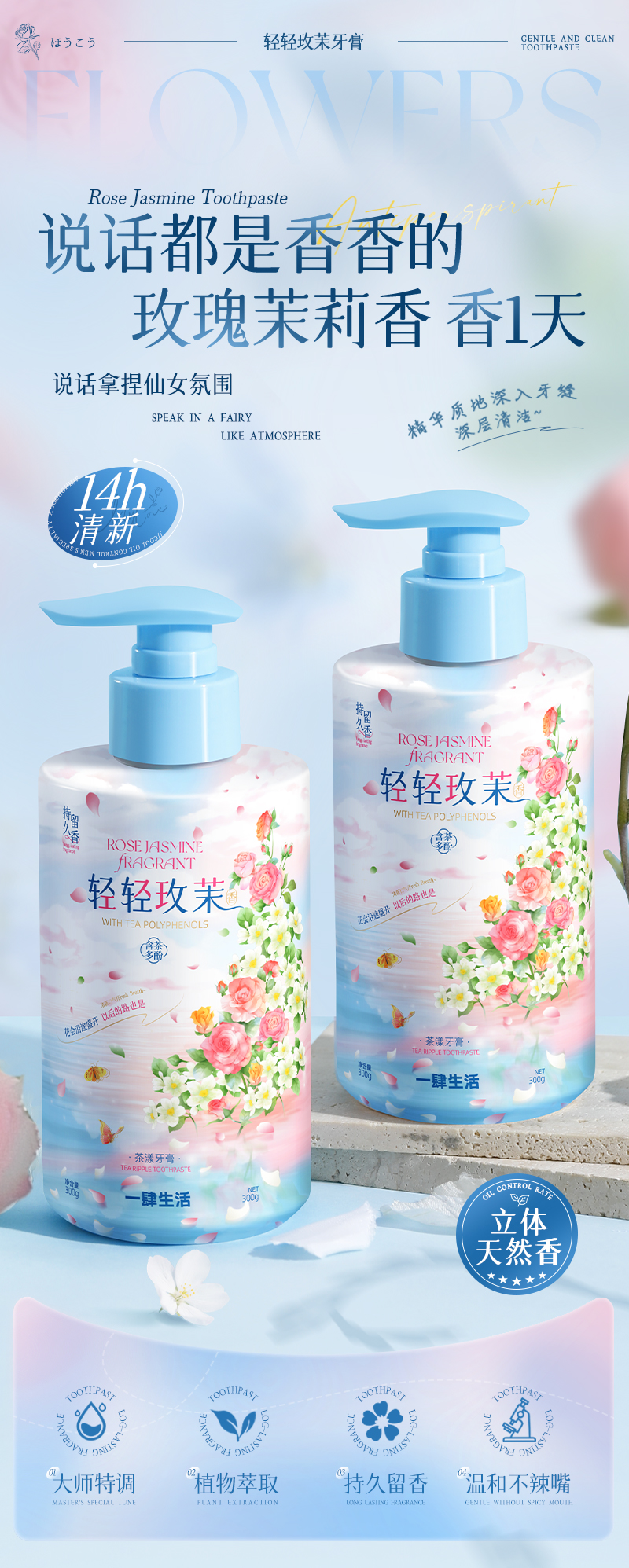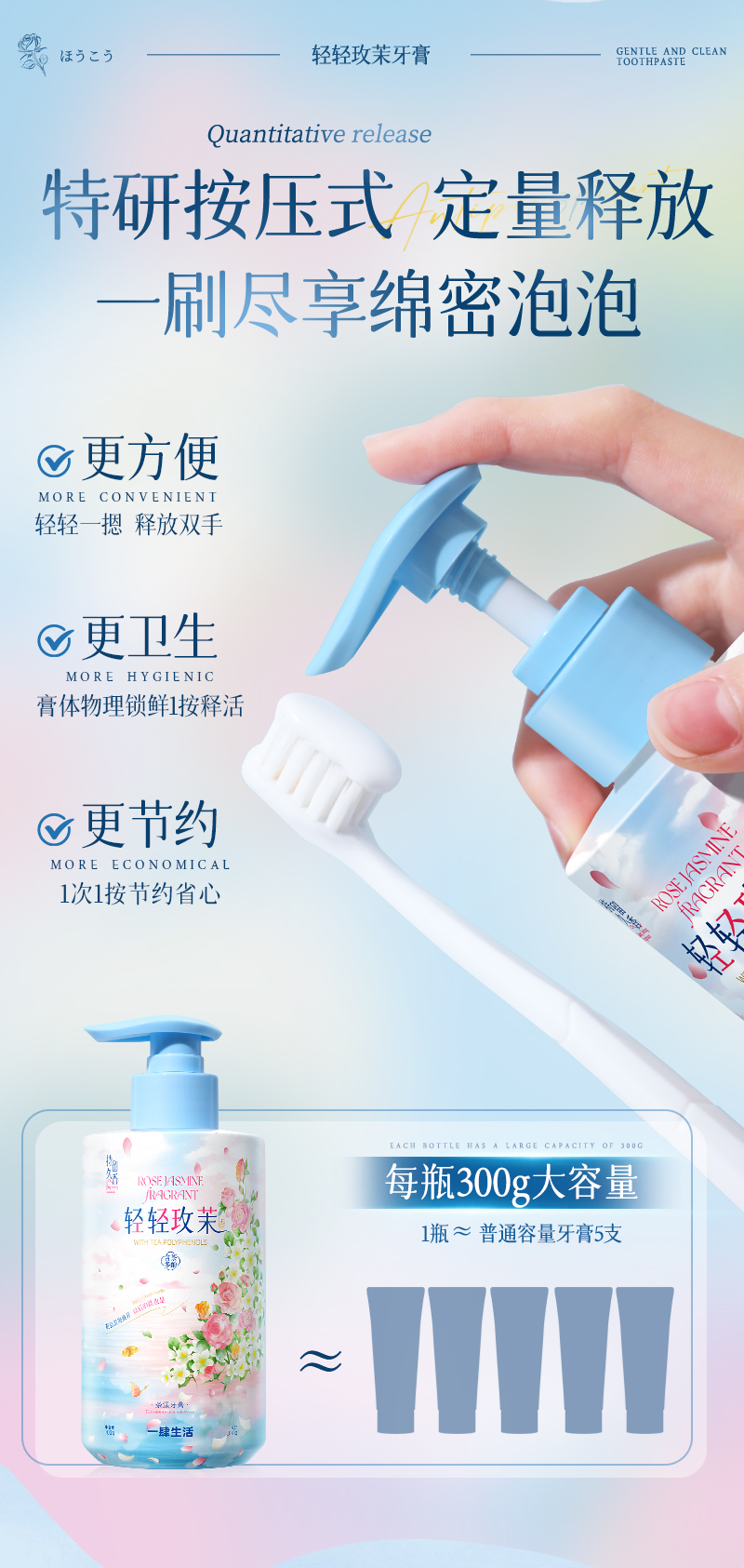 Press type rose jasmine floral toothpaste 300 g