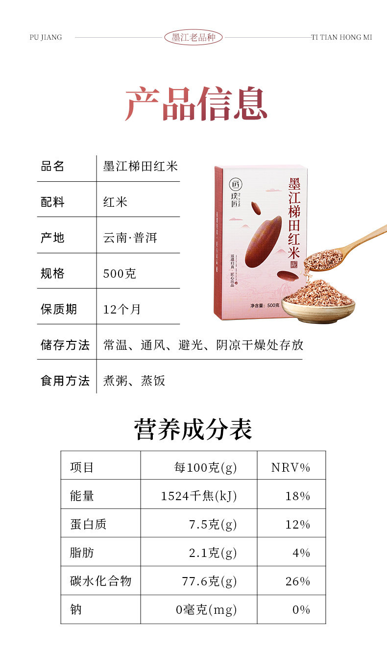 Pujiang Mojiang Terraces Red Rice Red Soft Rice 50 500 g