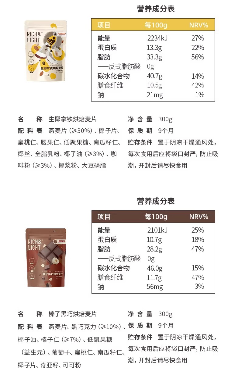 RichLight Hazelnut Black Chocolate Baking Oatmeal 300 g