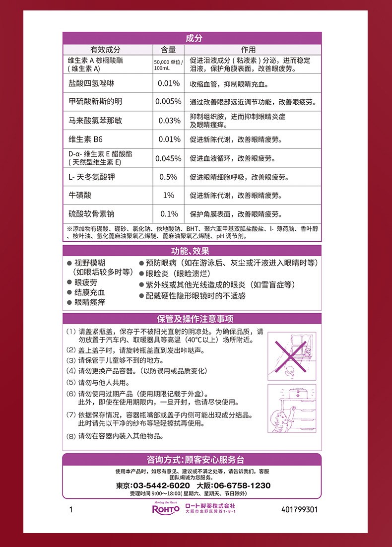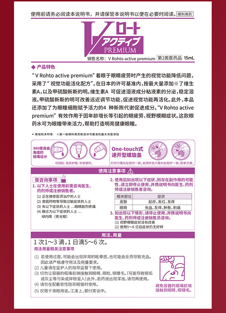 ROHTO 樂 敦紫鑽 中老年 滴眼液 抗疲勞 視 15 毫升