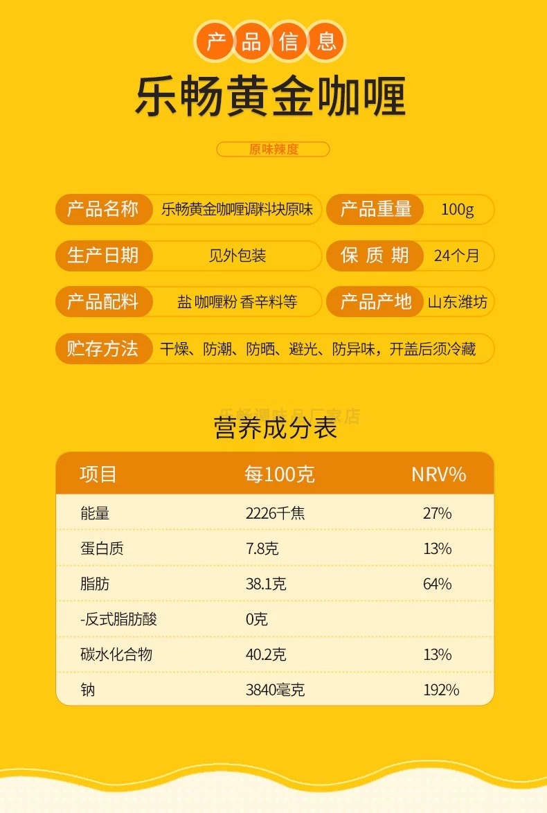 乐畅黄金咖喱 香辣味 100 克