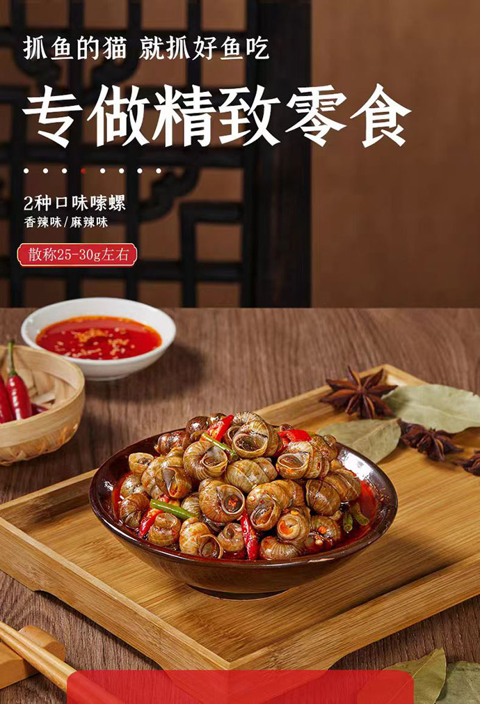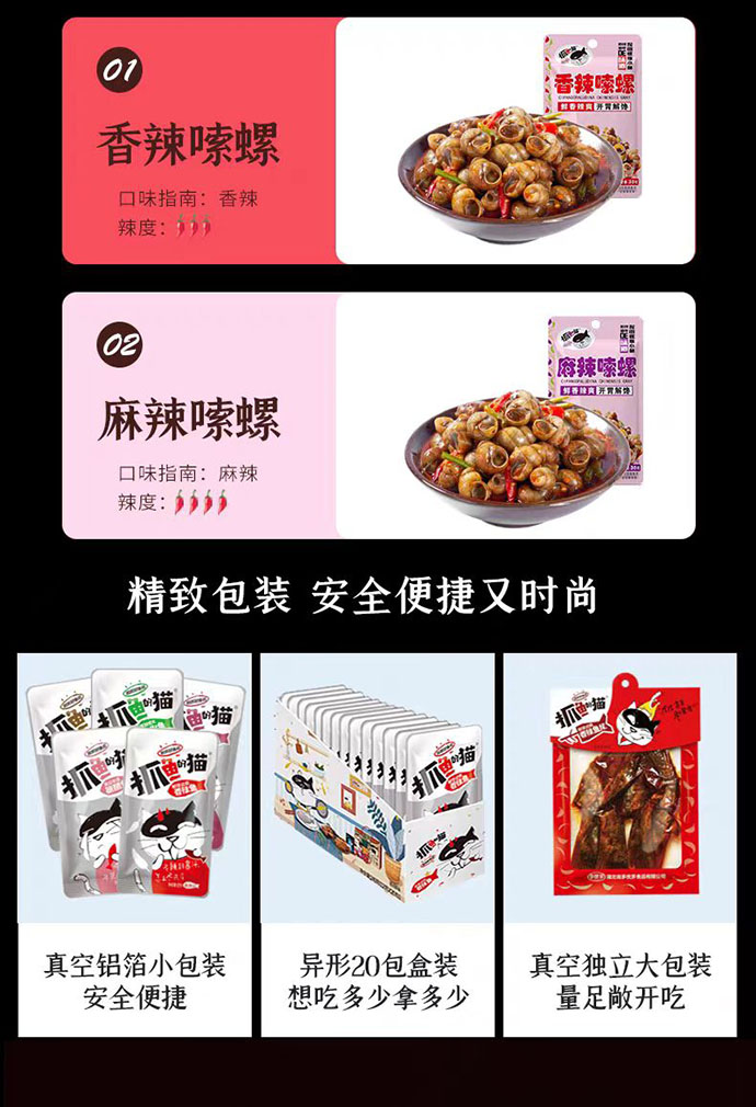 抓鱼的猫 爆汁嗦螺 香辣味 10包 约280g 280 克