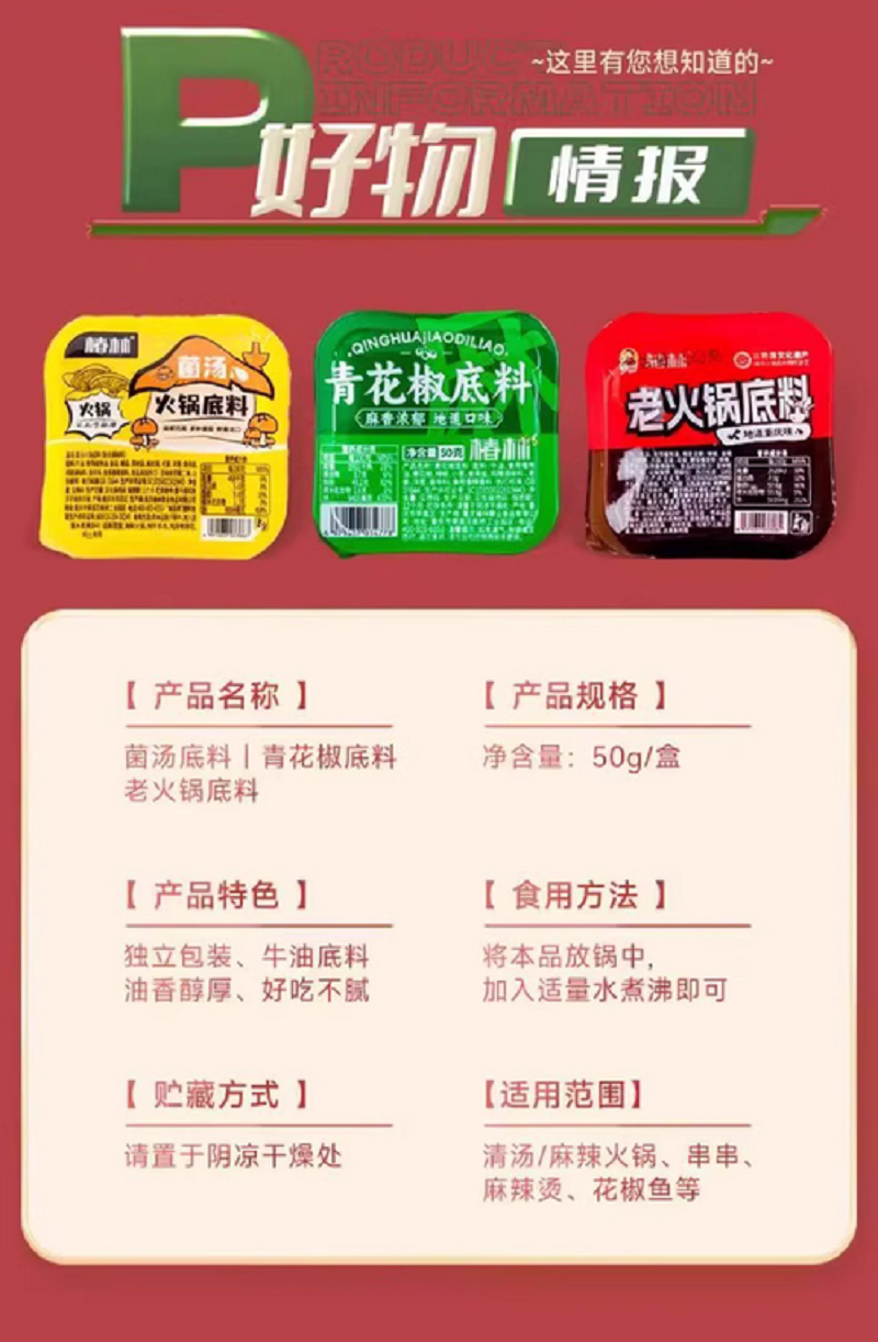 -Note: Each serving contains 50g of base material. Depending on personal taste, 500ml-800ml of drinking water can be added and paired with 500g of ingredients for consumption.