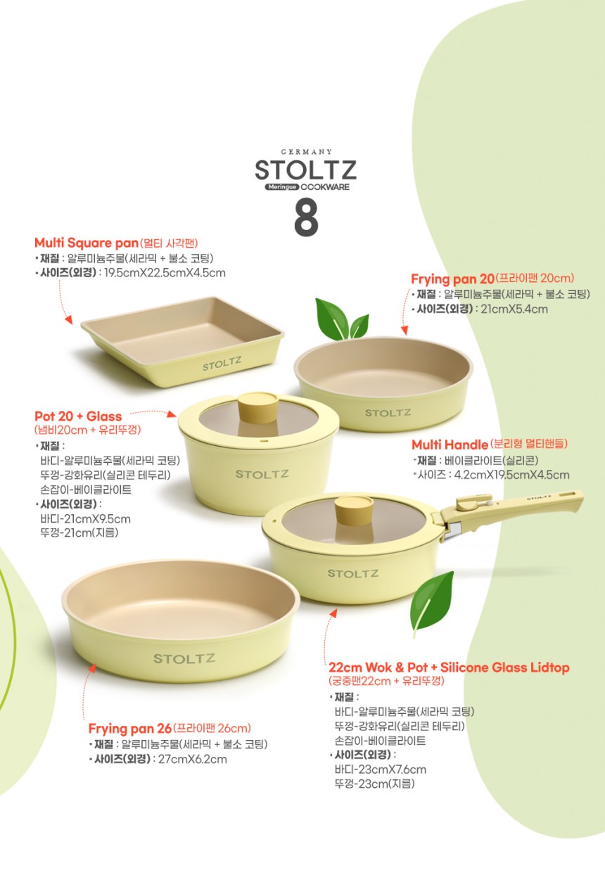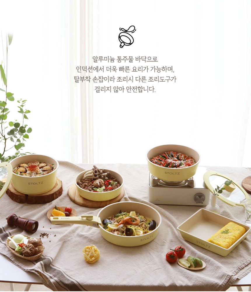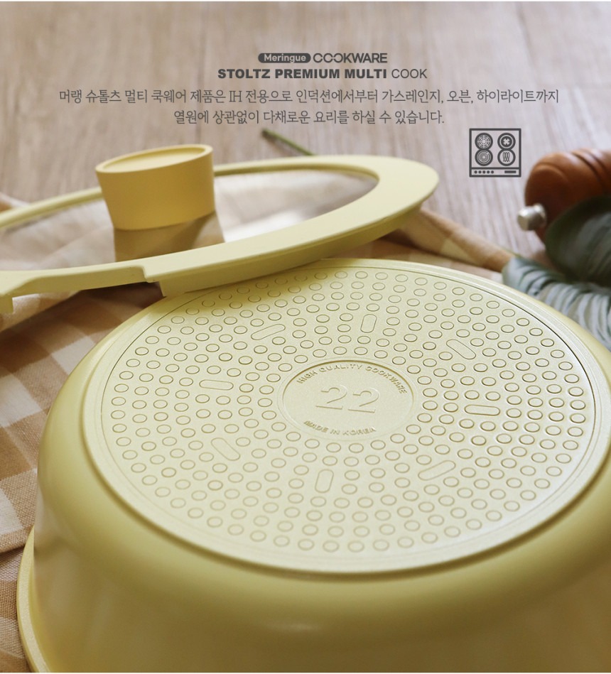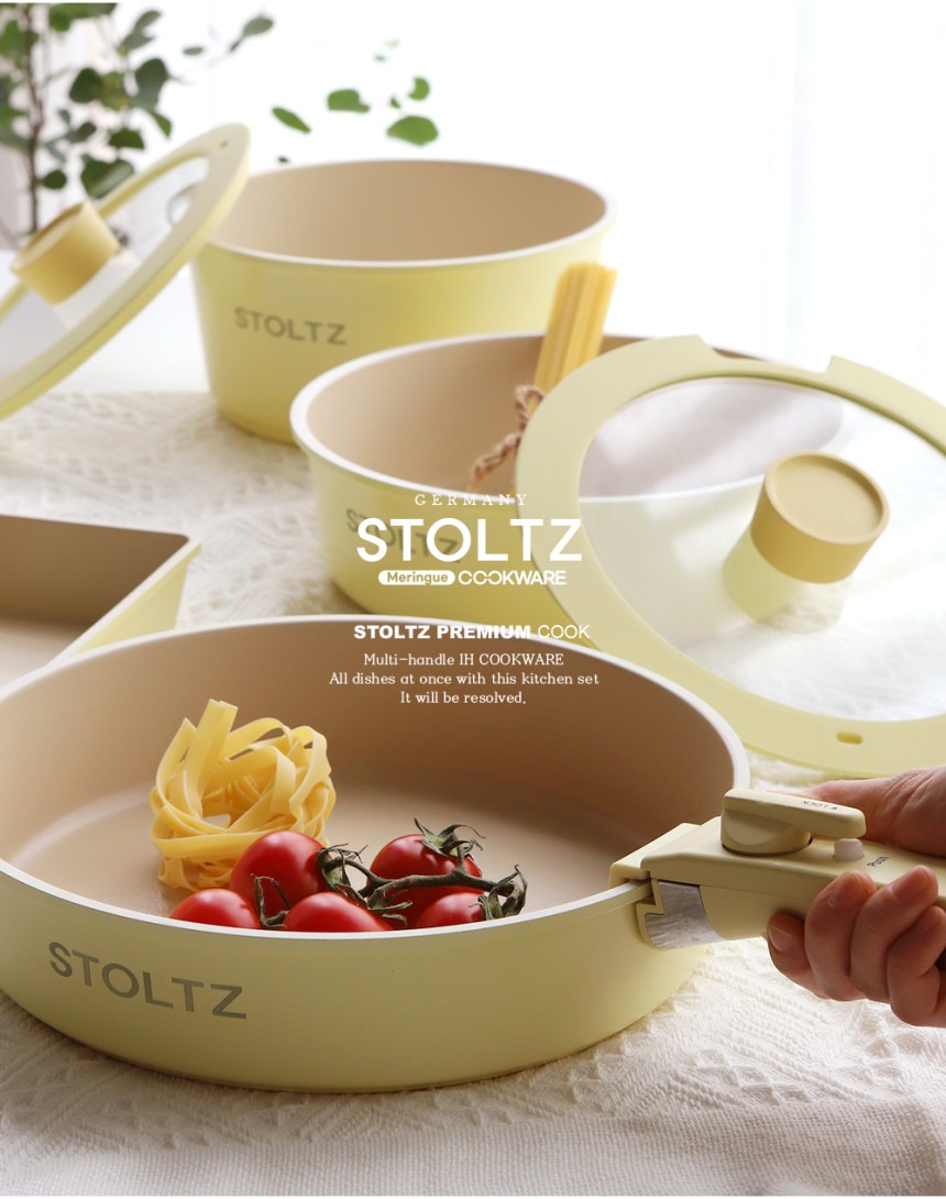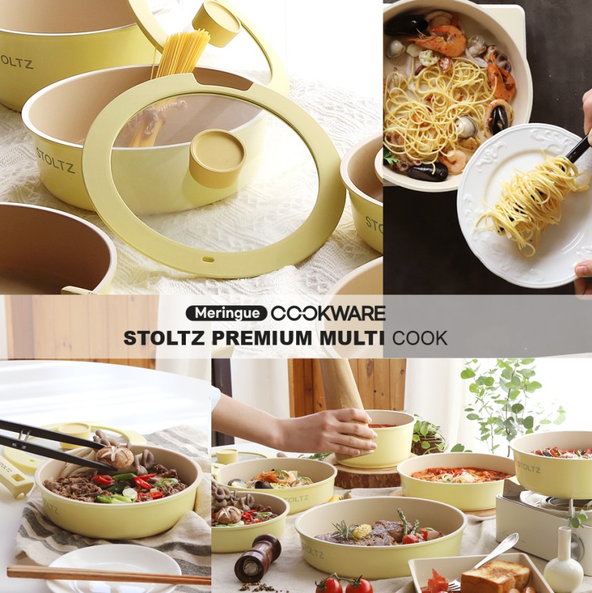 这款时尚实用的炊具套装专为现代厨房设计,采用柔和的柠檬蛋白酥皮色,并采用多层结构,以实现均匀的加热效果。适用于多种热源,包括电磁炉,满足您日常烹饪的各种需求。