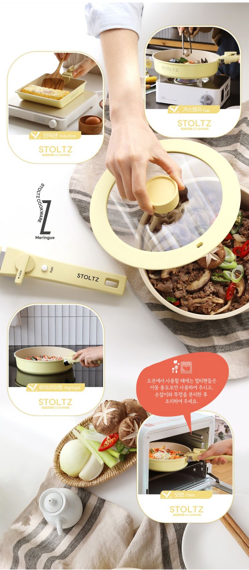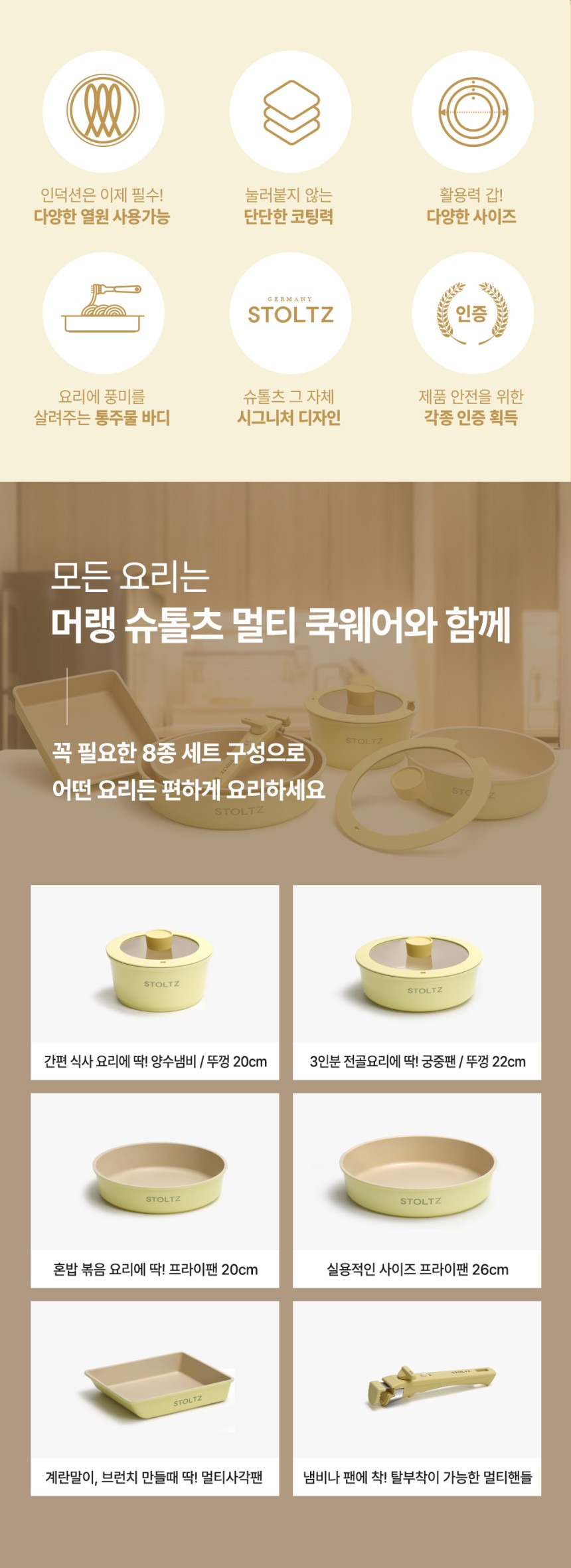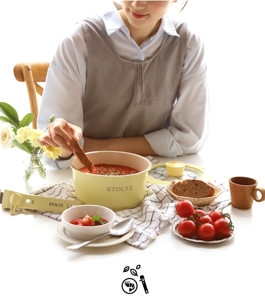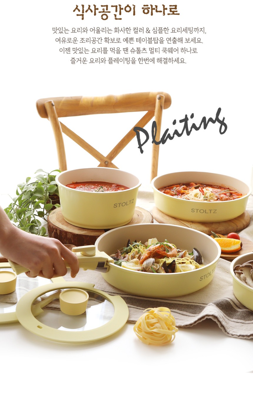 这款时尚实用的炊具套装专为现代厨房设计,采用柔和的柠檬蛋白酥皮色,并采用多层结构,以实现均匀的加热效果。适用于多种热源,包括电磁炉,满足您日常烹饪的各种需求。